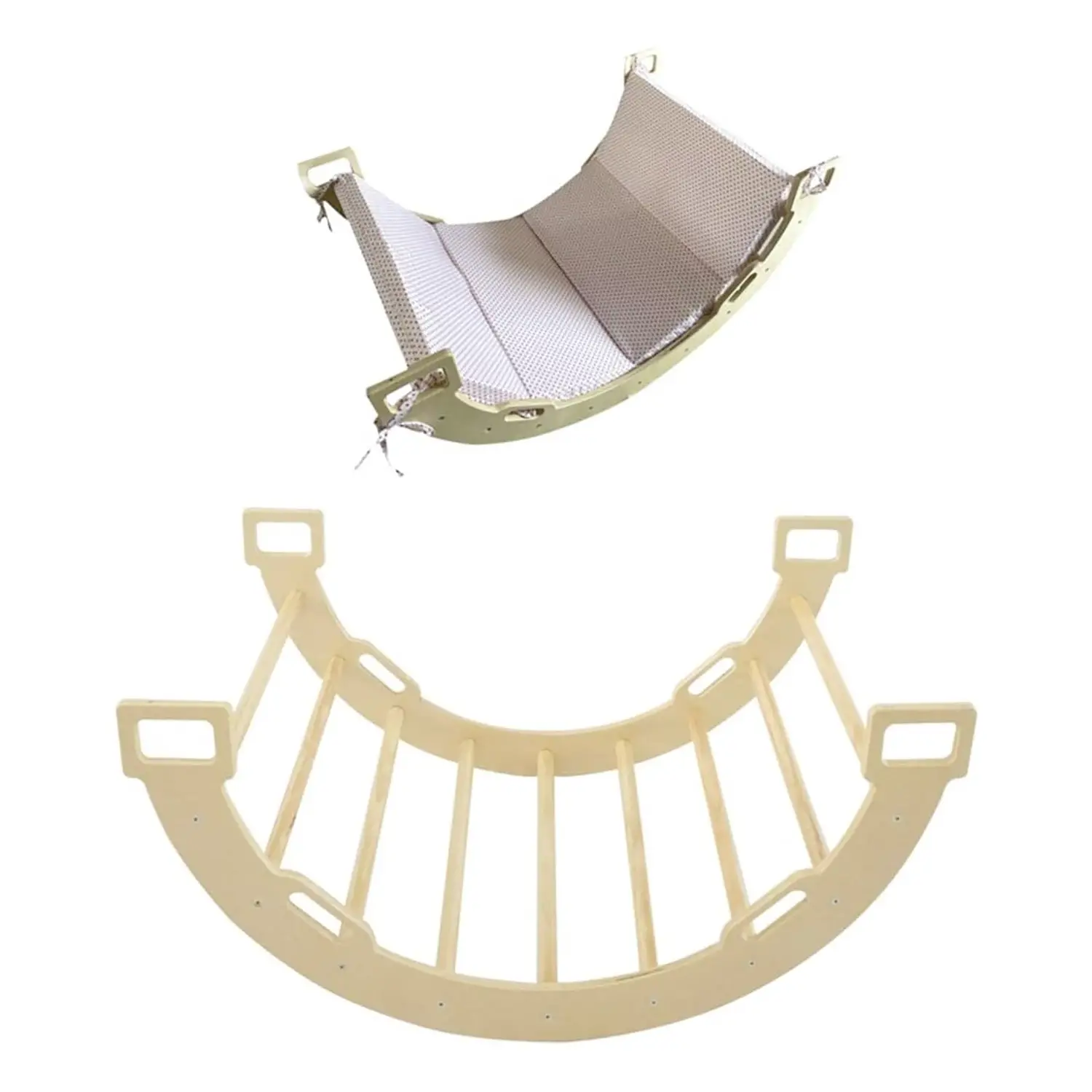 Arco Mutifunzione da Arrampicata e Dondolo 4 in 1 in Legno con Cuscino