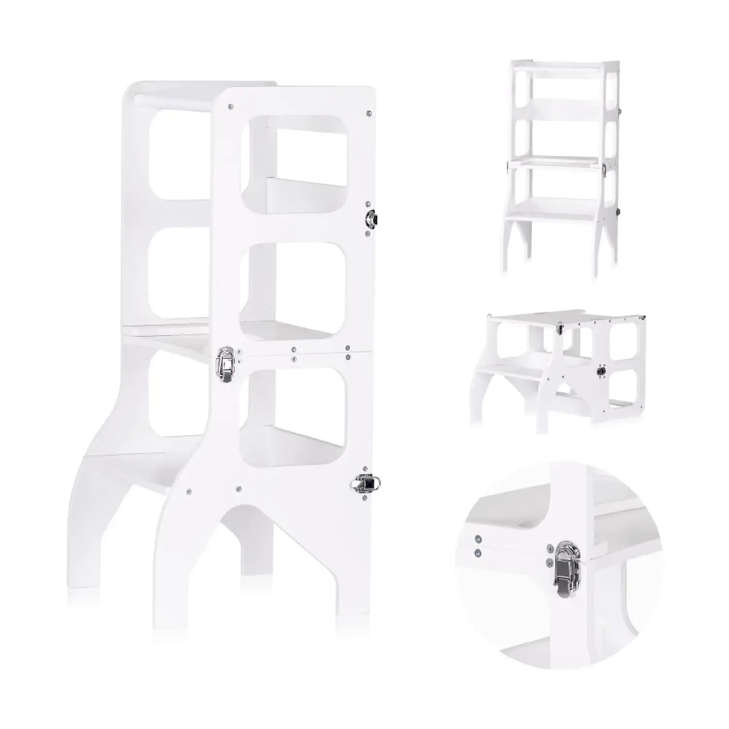 - ✅ Torre di apprendimento trasformabile in tavolo e sgabello