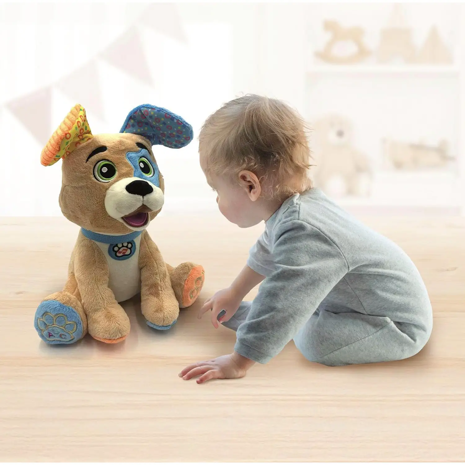 - ✅ Peluche interattivo che parla, gioca e canta, stimolando lo sviluppo sensoriale e cognitivo dei bambini.
