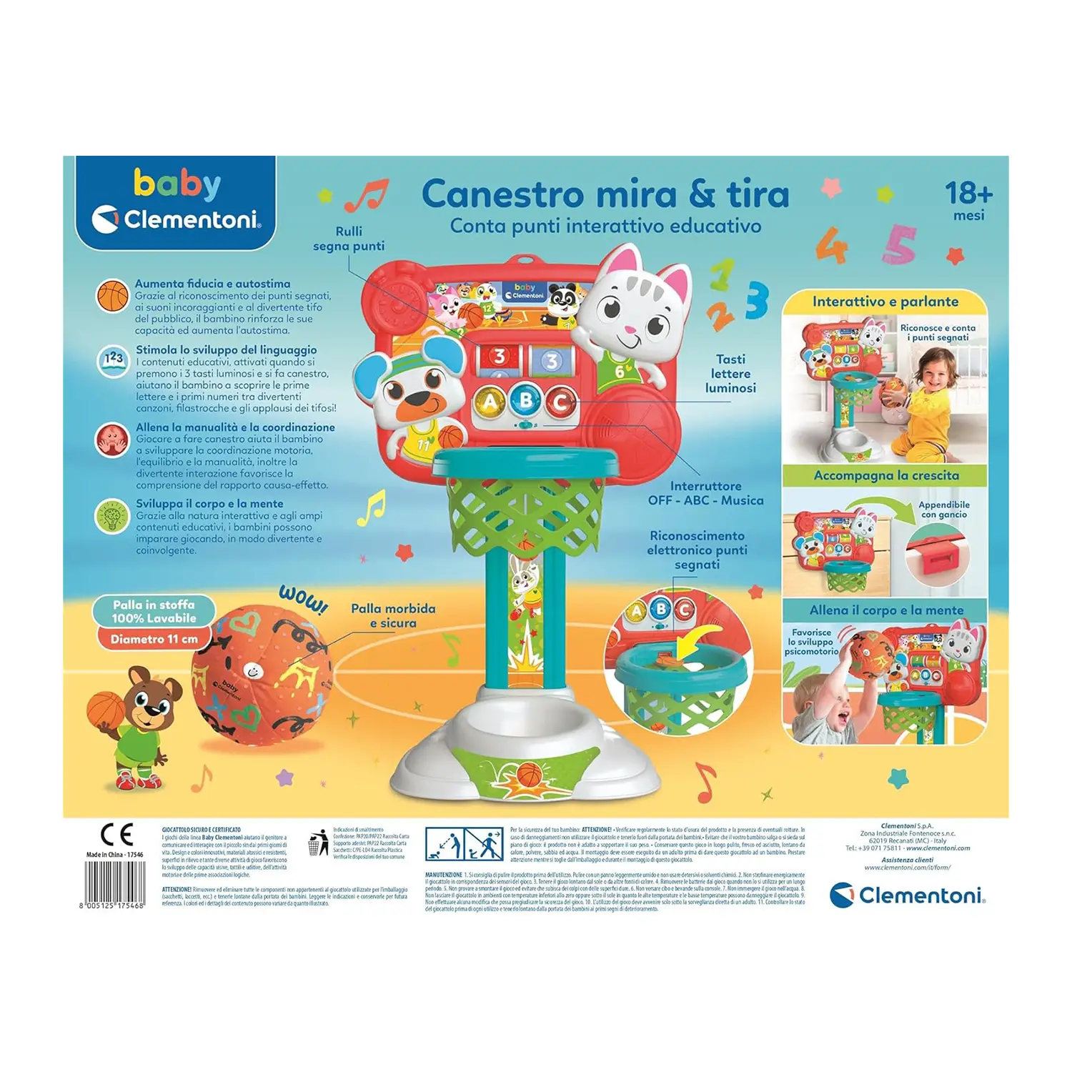 Scopri il Canestro Mira e Tira di Clementoni Baby, il gioco educativo pensato per stimolare lo sviluppo sensoriale e cognitivo dei più piccoli a partire dai 18 mesi. Grazie a luci, suoni, canzoni e frasi in italiano, questo canestro interattivo trasforma ogni tiro in un’occasione per imparare.
