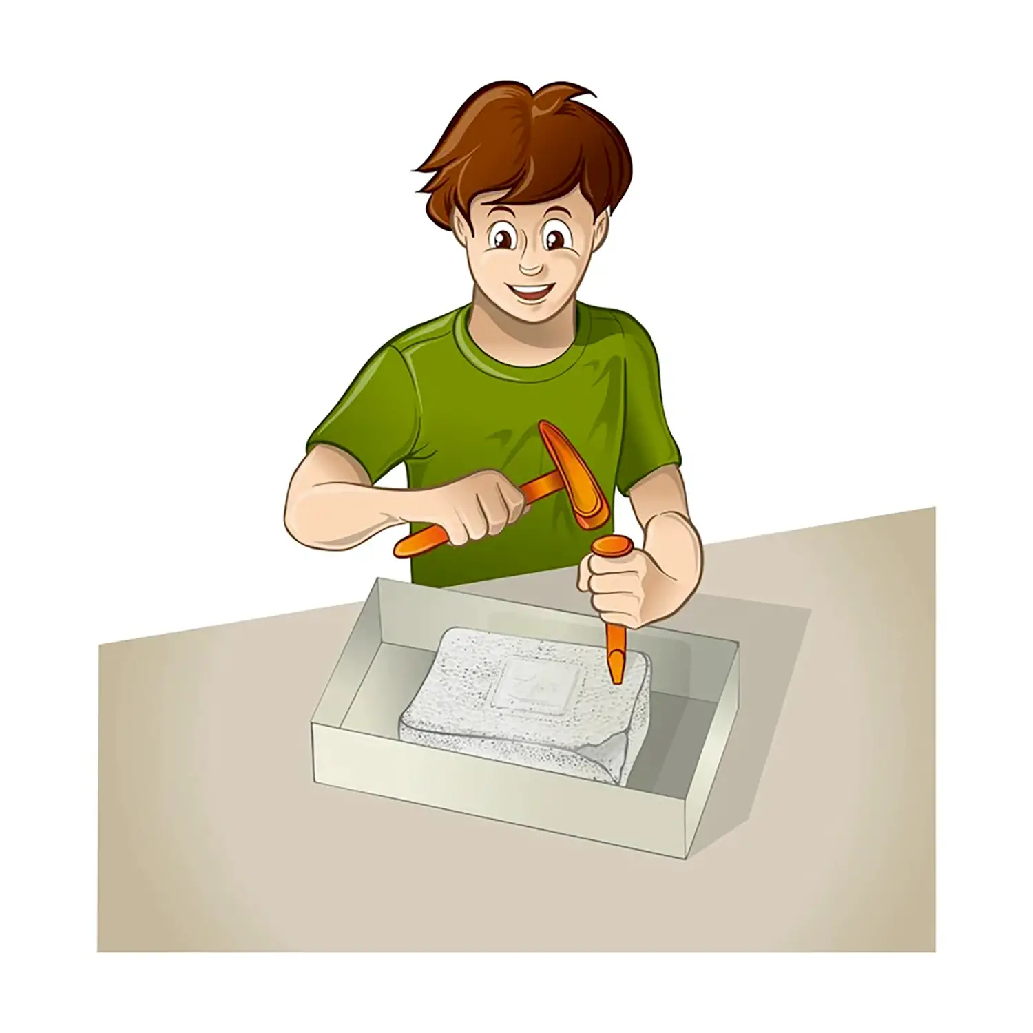 Esperienza paleontologica realistica: Utilizzando martello e scalpello inclusi, i piccoli esploratori potranno scavare con cura i fossili, proprio come veri paleontologi, scoprendo pezzo dopo pezzo i resti dei dinosauri.