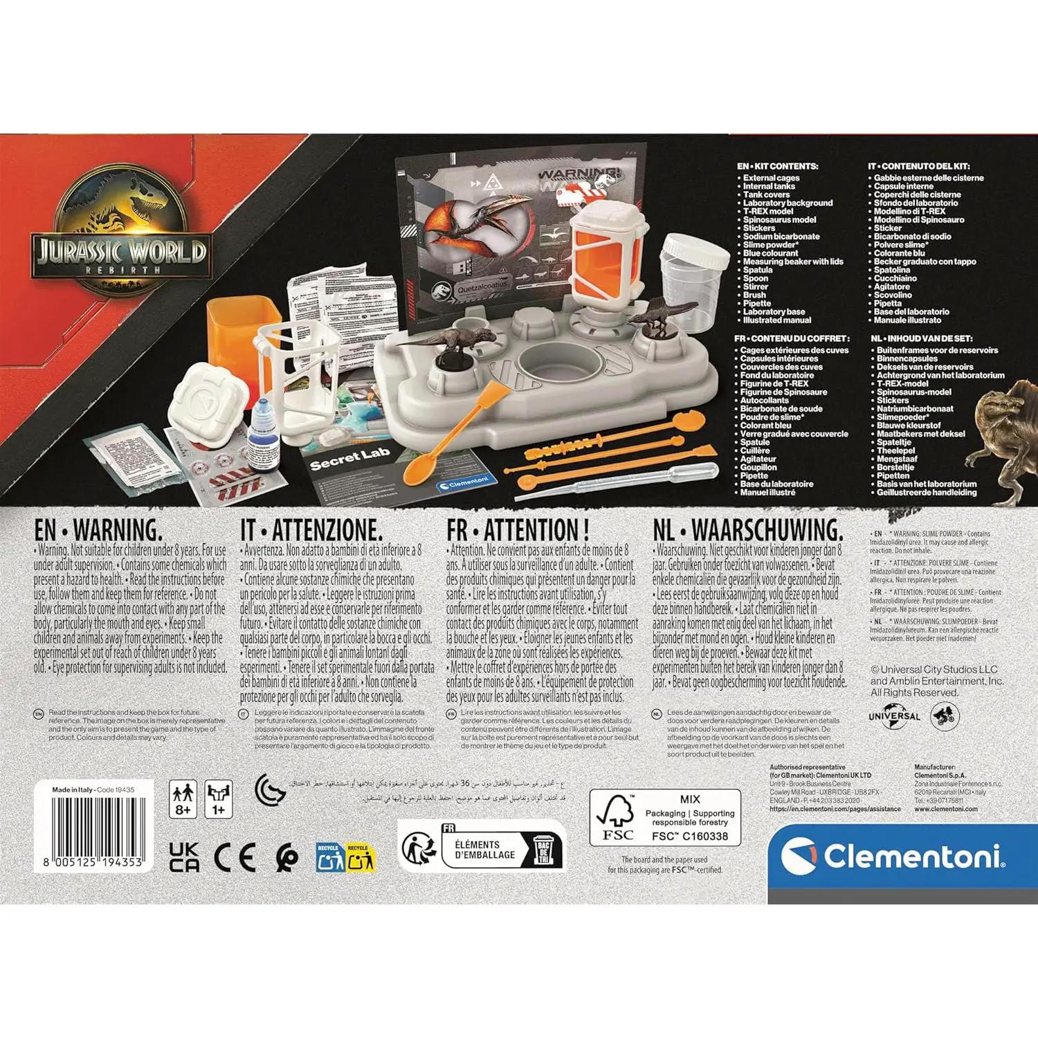 Esperienza Unica con Jurassic World Rebirth - Secret Lab Scopri il laboratorio segreto di Jurassic World Rebirth con modellini di T-Rex e Spinosauro, kit per slime. Rivivi le scene del film con questo gioco scientifico. Imparare Giocando con Jurassic World Rebirth - Secret Lab Un gioco educativo che sviluppa logica e manualità. I bambini esplorano esperimenti ispirati a Jurassic World Rebirth, divertendosi e imparando. Come Giocare con Jurassic World Rebirth - Secret Lab Usa il kit, modellini di dinosauri e manuale illustrato per creare slime e riprodurre scene del film. Un’esperienza interattiva e coinvolgente. Contenuto e Benefici di Jurassic World Rebirth - Secret Lab Gioco Made in Italy per bambini 8+, include modellini dinosauri, laboratorio del film e kit slime. Stimola curiosità e conoscenza con Clementoni.