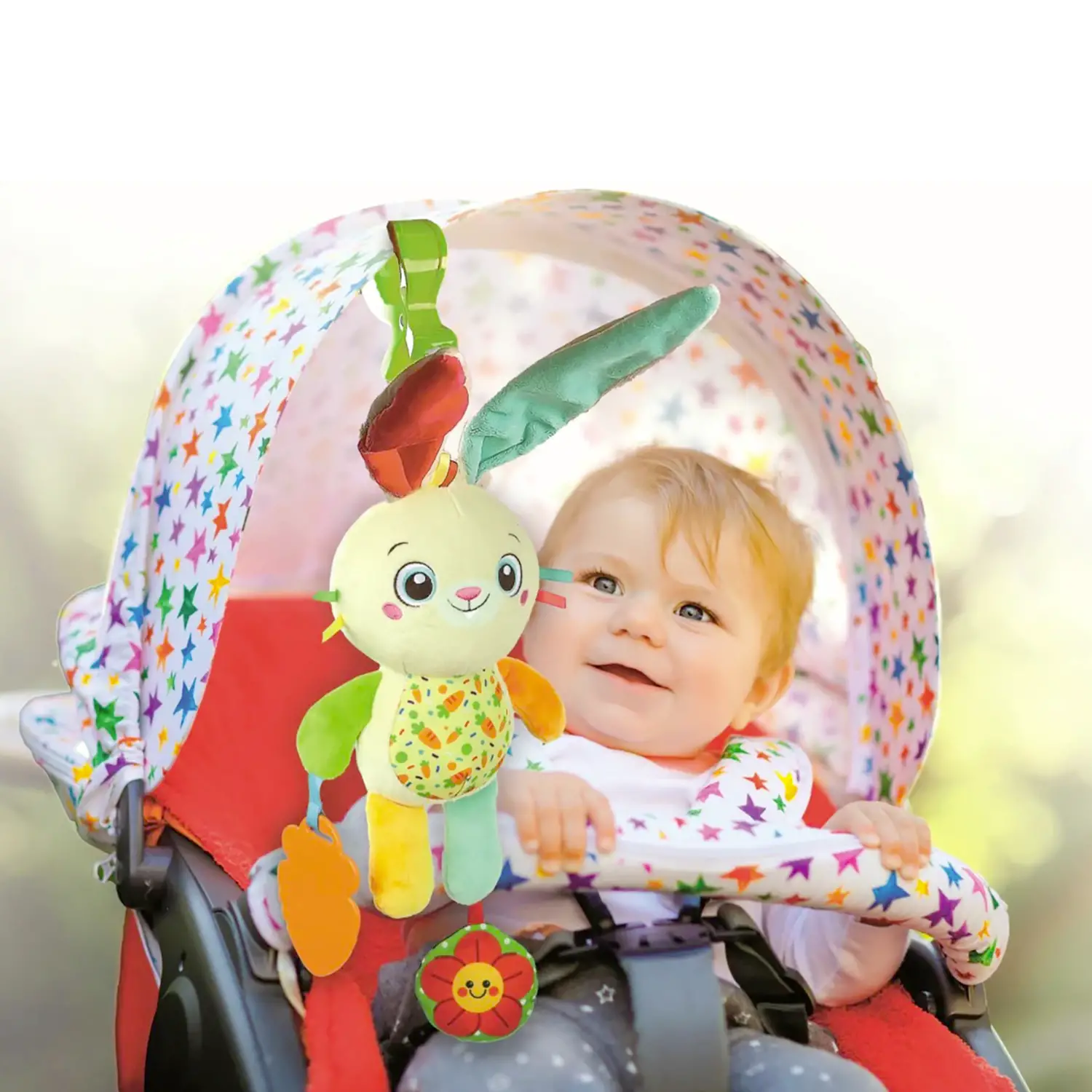 Peluche da Viaggio Multiattività per Neonati Morbido coniglietto pensato per intrattenere e stimolare i bambini in auto, sul passeggino o durante gli spostamenti. Un peluche sensoriale leggero e pratico, ideale per trasformare ogni tragitto in un momento divertente e educativo.