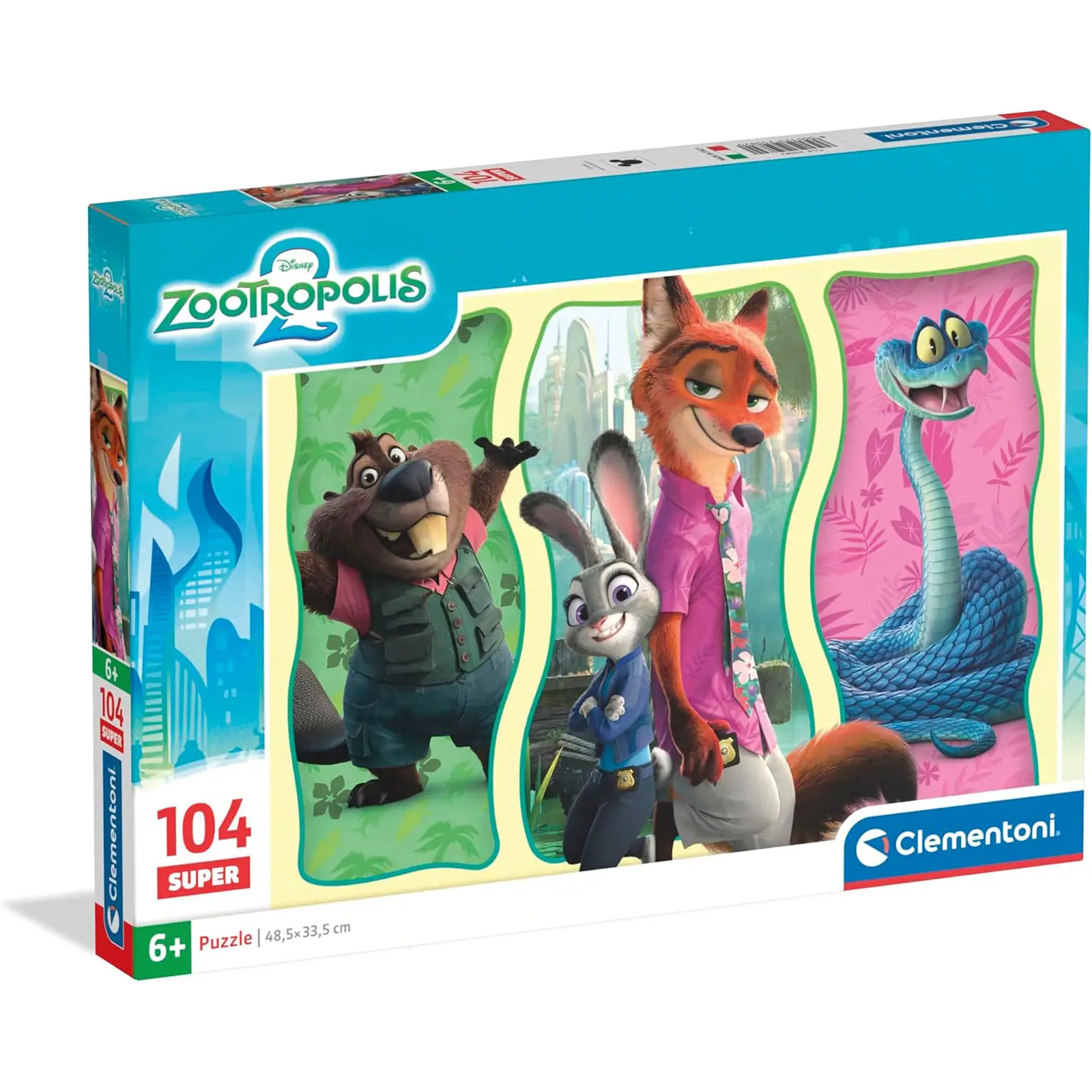 - ✅ Puzzle 104 pezzi con immagini di Zootopia 2, ideale per coinvolgere i bambini in attività divertenti.
