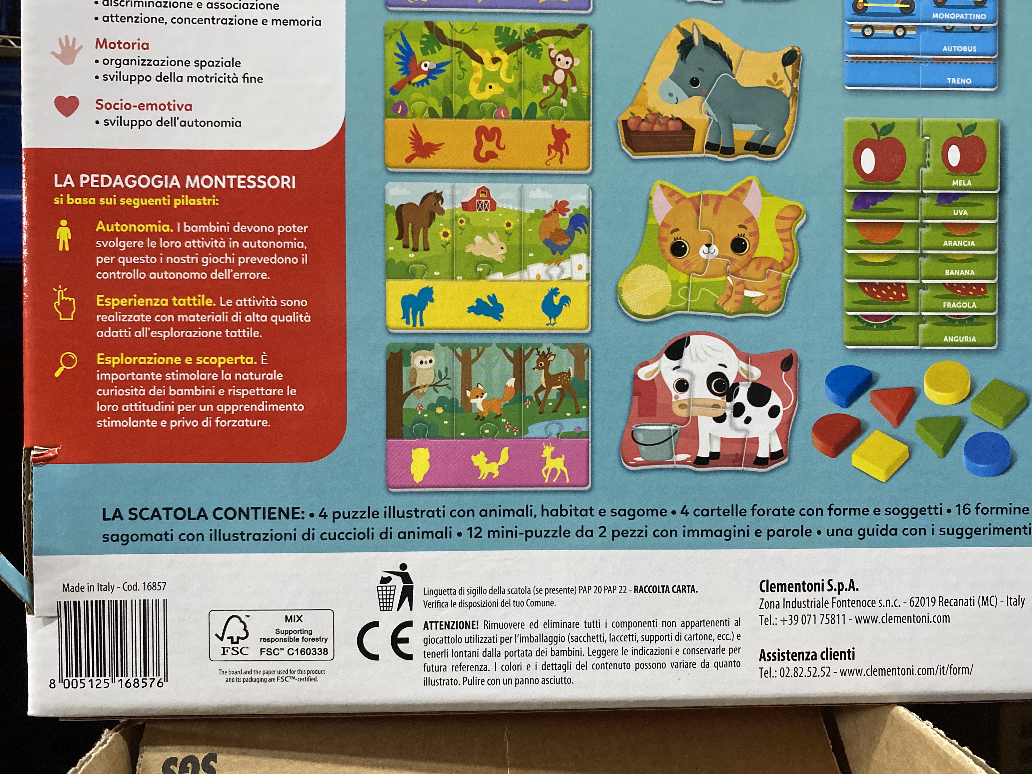- ✅ Cofanetto con 4 giochi educativi per scoprire forme, colori e animali.