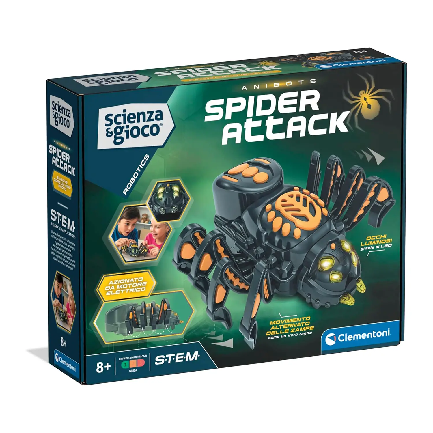 Scienza & Gioco – Spider Attack Un robot da assemblare che si muove come un vero ragno, perfetto per bambini dagli 8 anni in su che amano le sfide di costruzione e il mondo della robotica.