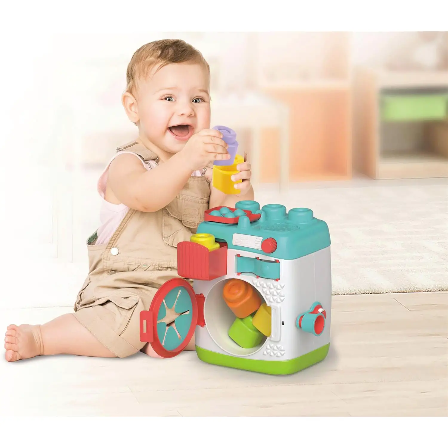 Lavatrice Sensoriale Interattiva La Soft Clemmy - Sensory Washing Machine di CLEMENTONI è un giocattolo interattivo che stimola i sensi. Elementi sicuri, staccabili e lavabili, per un’esperienza di gioco coinvolgente e sicura. Sviluppo delle Abilità Motorie Questa lavatrice sensoriale aiuta a sviluppare manualità e coordinazione. Gli elementi mobili, come manopola e paginetta, incoraggiano il movimento e l’interazione, promuovendo l’apprendimento attraverso il gioco. Gioco Imitativo per Bambini Il bambino può fingere di lavare i mattoncini nell’oblò rotante. L’uso di elementi mobili come la fascia interruttore offre un’esperienza di gioco dinamica e creativa. Sicurezza e Divertimento Progettata per bambini dai 12+ mesi, la Soft Clemmy - Sensory Washing Machine offre elementi sicuri, morbidi e lavabili. Un’esperienza di gioco imitativa che stimola la sensorialità e lo sviluppo.