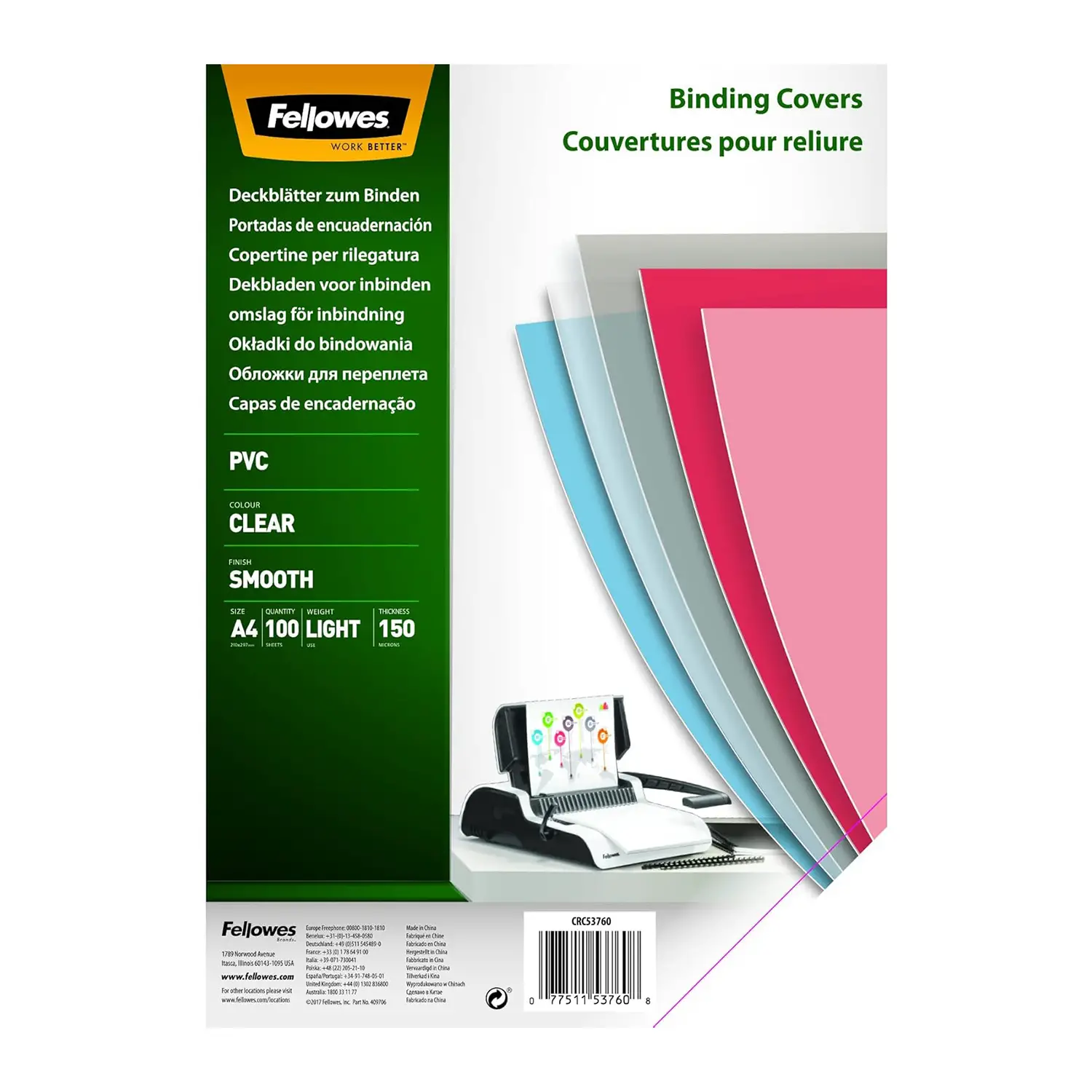 Copertine PVC Trasparenti 150 Micron A4 di FELLOWES: Chiarezza e Professionalità per i Tuoi Documenti