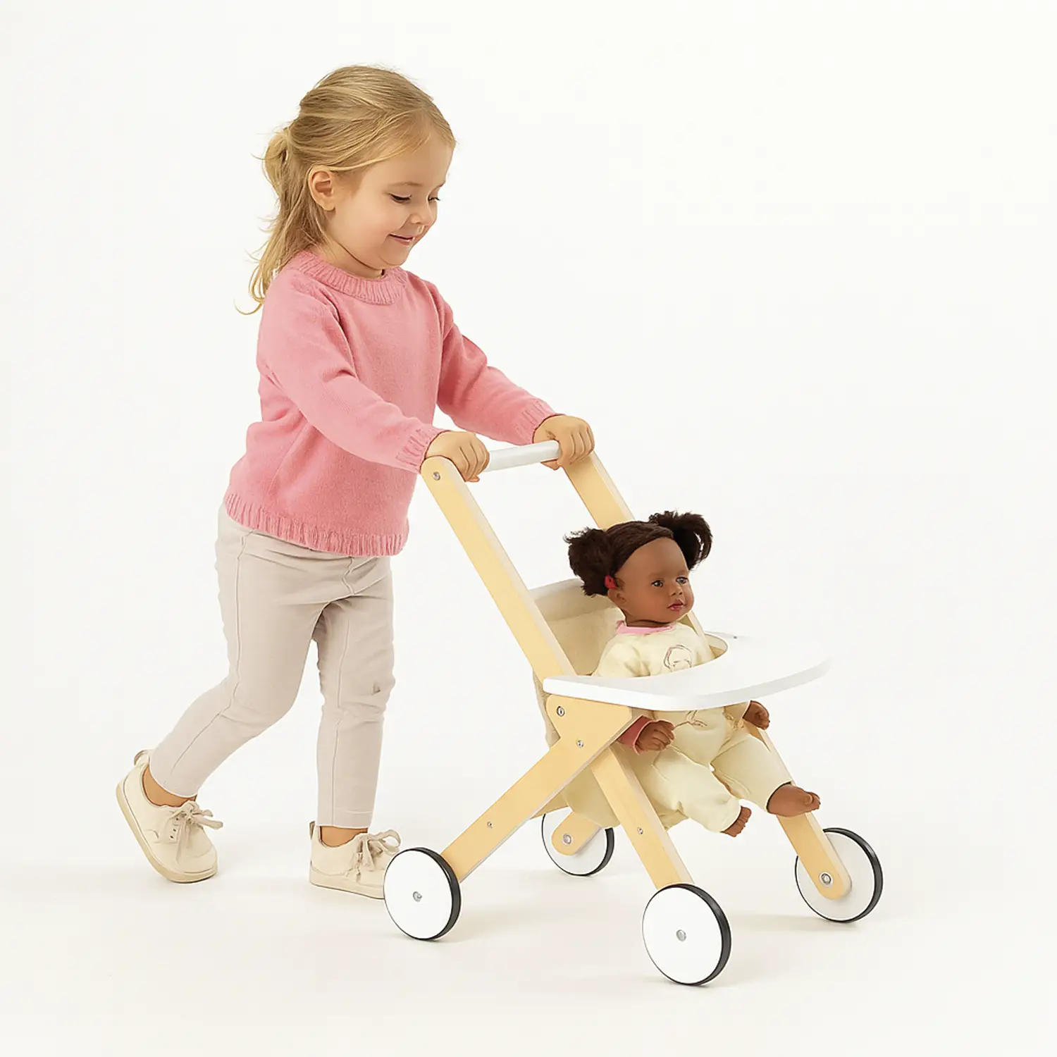 Struttura robusta e durevole Realizzato in legno di alta qualità, questo passeggino offre stabilità e resistenza. Le dimensioni 31x44x50.6 cm lo rendono perfetto per accompagnare il gioco quotidiano delle bambine e dei bambini.