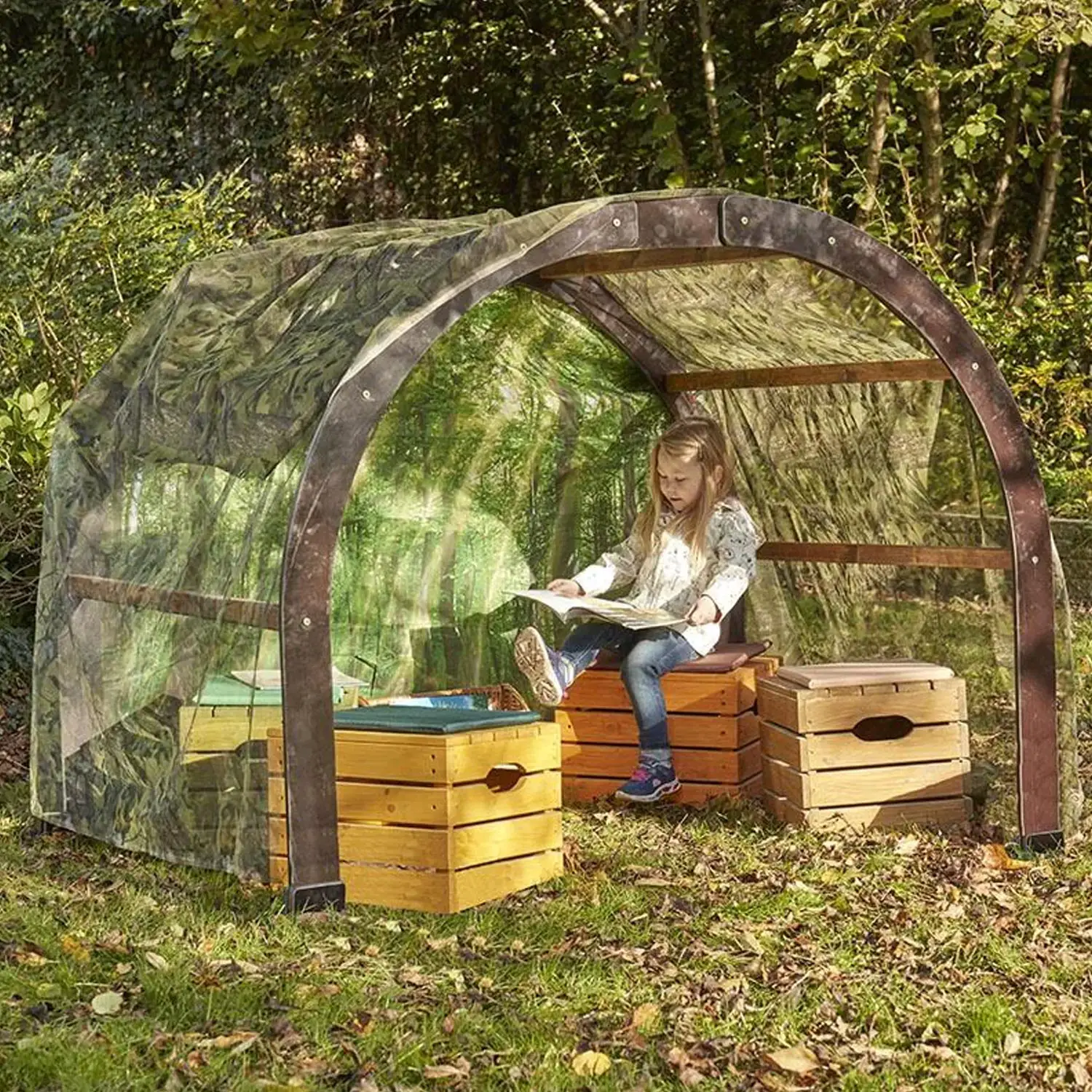 Questa grande struttura ad arco in resistente legno per esterni, è perfetta per creare una tana, un rifugio, un’area relax nel tuo spazio esterno. Aggancia o intreccia teli in tessuto o materiali naturali sui pioli laterali per creare un bellissimo rifugio, perfetto per il gioco simbolico, la lettura, il relax o per conversare con amiche e amici.