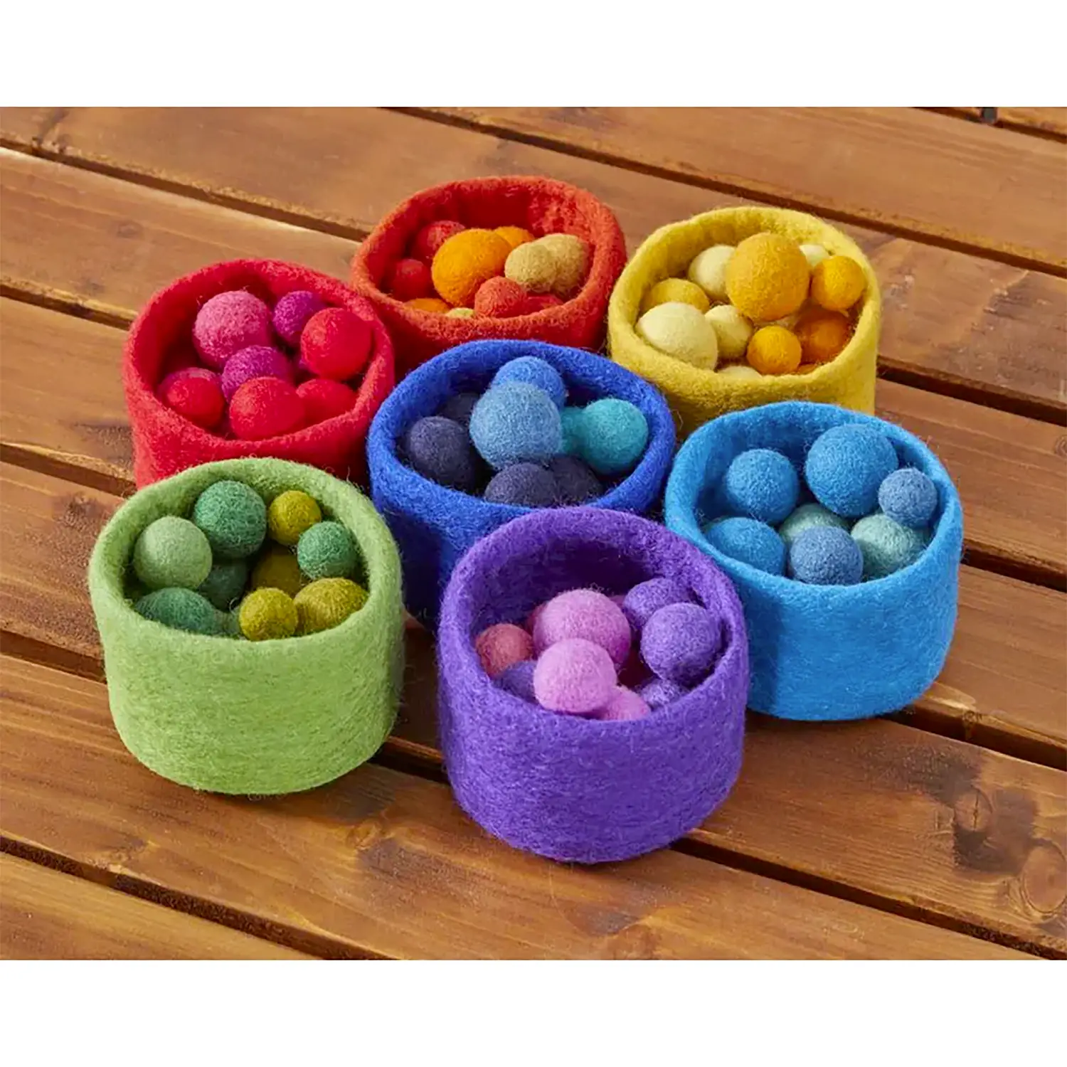 Set di Ciotole Arcobaleno in Feltro con Palline – Gioco Educativo e Sensoriale Un meraviglioso set composto da 7 ciotole in feltro colorato e 100 palline in feltro in varie sfumature! Perfetto per ordinare per colore, sviluppare abilità motorie fini e introdurre concetti matematici in modo divertente e tattile.