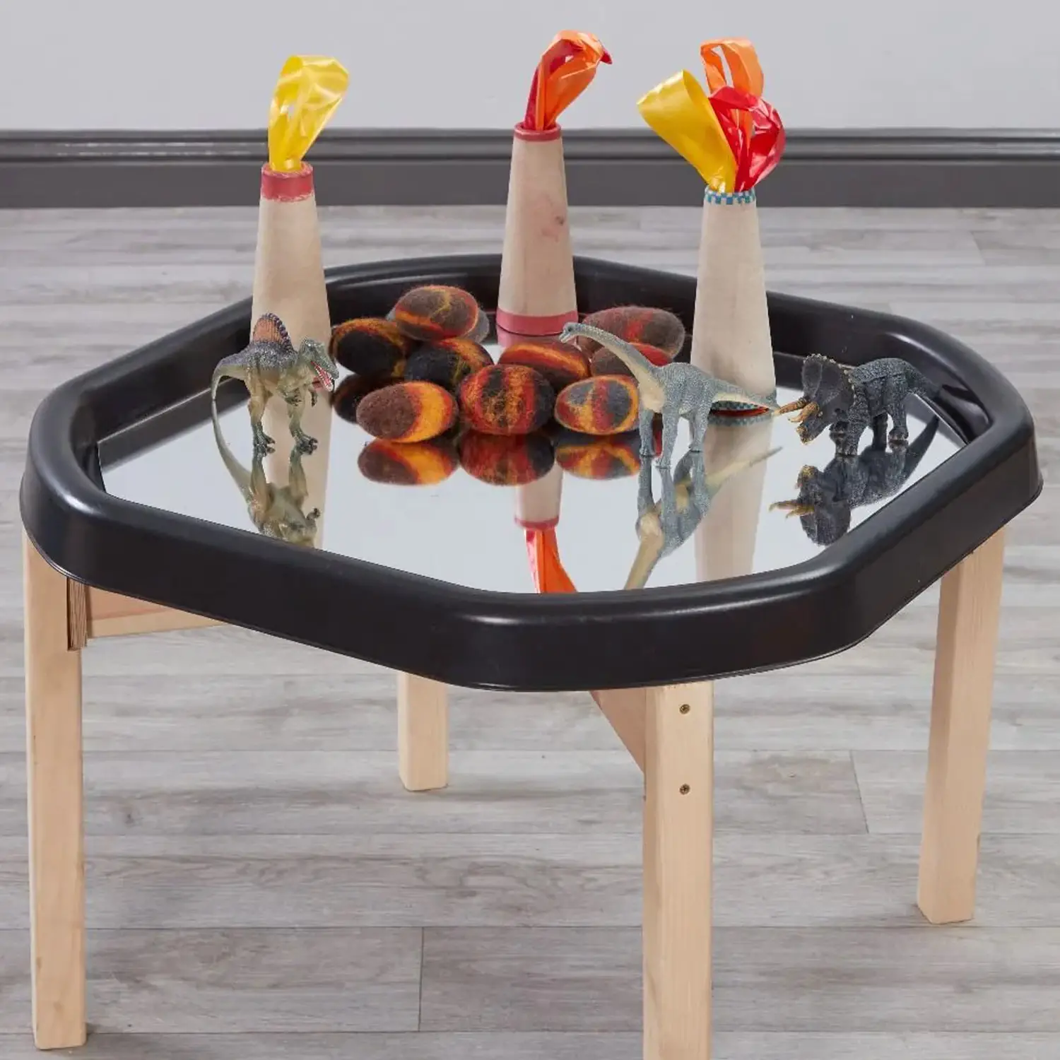 Può essere utilizzato per attività di gruppo o individuali, ottimo per aggiungere tesori naturali da esplorare per i bambini, studiare la riflessione utilizzando diversi elementi come la creazione di segni con la vernice, stimolando la scoperta e la consapevolezza di sé. Ideale anche per i bambini più grandi che studiano la simmetria e la riflessione.