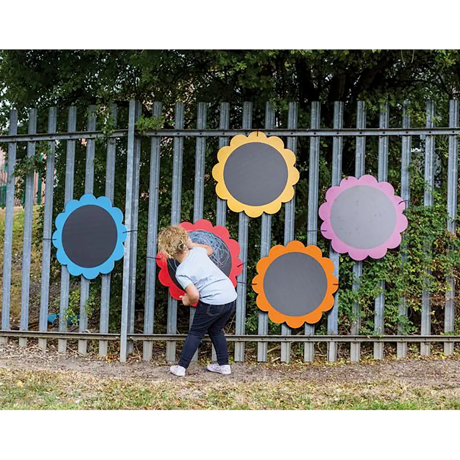Perfette per Ogni Ambiente Educativo Posizionale su recinzioni o pareti per ravvivare l’area gioco e offrire ai bambini nuovi stimoli per il gioco creativo e l’interazione. Un elemento versatile che arricchisce l’ambiente esterno con colore e funzionalità.