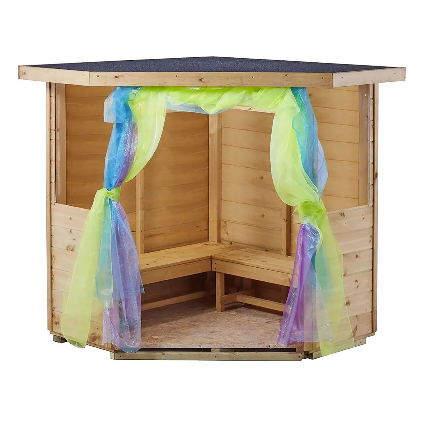 Benefici Educativi e Sociali - Sfrutta al meglio lo spazio: Trasforma angoli inutilizzati in aree funzionali e accoglienti. - Stimola la creatività: Perfetto per giochi di ruolo e attività creative, promuovendo immaginazione e socializzazione. - Promuove il benessere: Un luogo ideale per riflettere, rilassarsi e godersi momenti di tranquillità. - Favorisce l’apprendimento all’aperto: Integra le attività educative all’esterno, arricchendo l’esperienza scolastica.