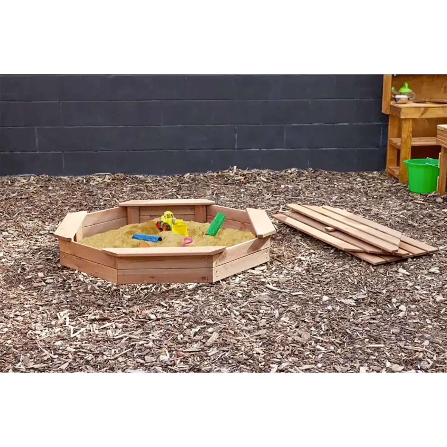 Sabbiera progettata per il gioco collaborativo in spazi esterni compatti. La sua forma ottagonale permette a piu’ bambini di sedersi sulle panchine integrate mentre scavano. Una caratteristica distintiva è il coperchio in legno in tre parti, che evita di dover sollevare pesi a fine giornata. Il coperchio assicura che la sabbia rimanga pulita e asciutta quando non viene utilizzata. Questa sabbiera offre una zona dedicata all’esplorazione sensoriale, permettendo ai bambini di scoprire volumi, consistenze e concetti ingegneristici in un ambiente comodo e con posti a sedere.