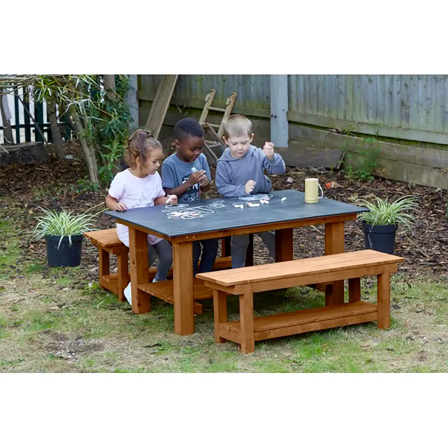Tavolo-Lavagna Scrivibile con 2 Panche, Legno per Esterni