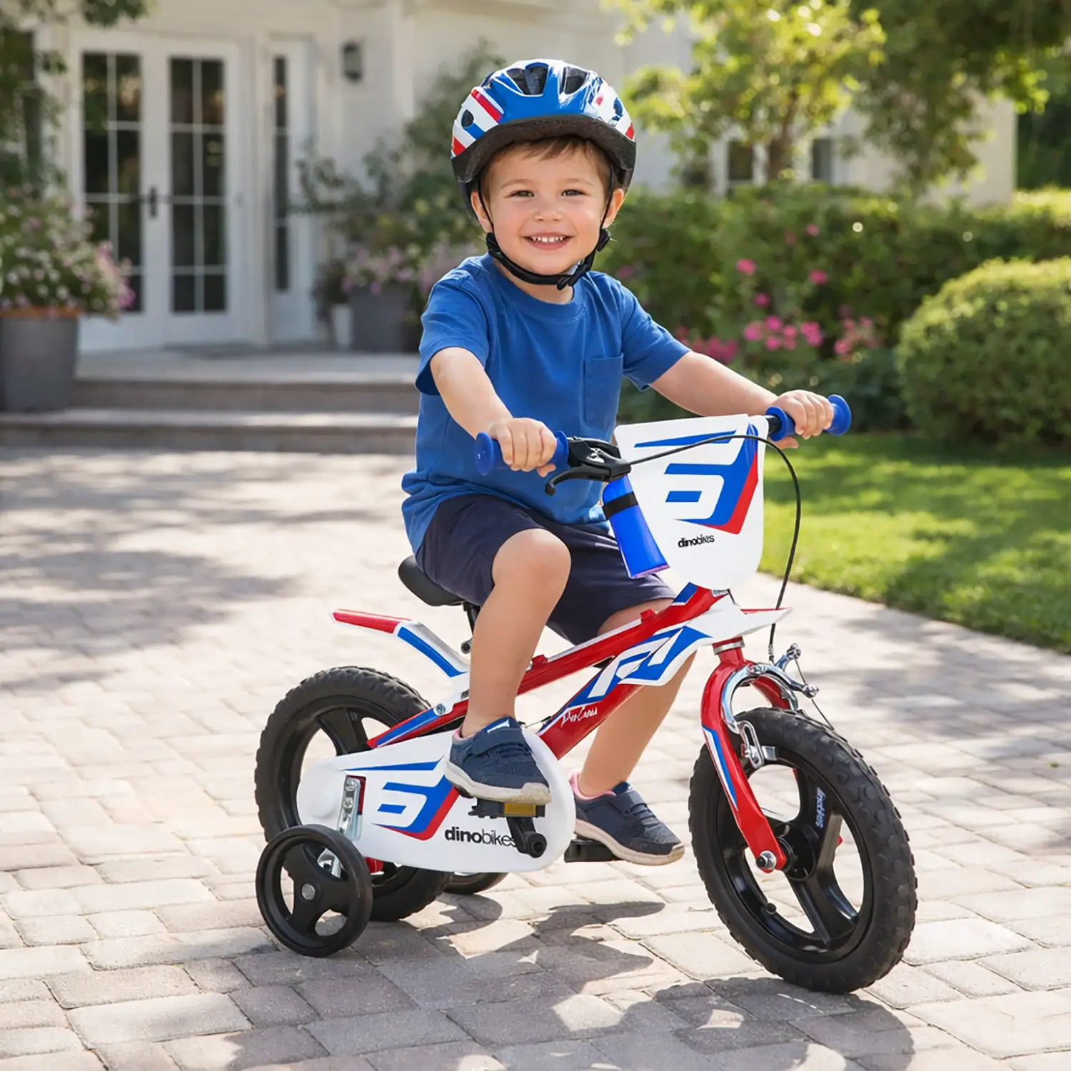 Design R1 firmato Dino Bikes – Grafica sportiva rosso, bianco e blu con stile moderno. Unisce divertimento, sicurezza e qualità italiana per rendere ogni pedalata un momento speciale.