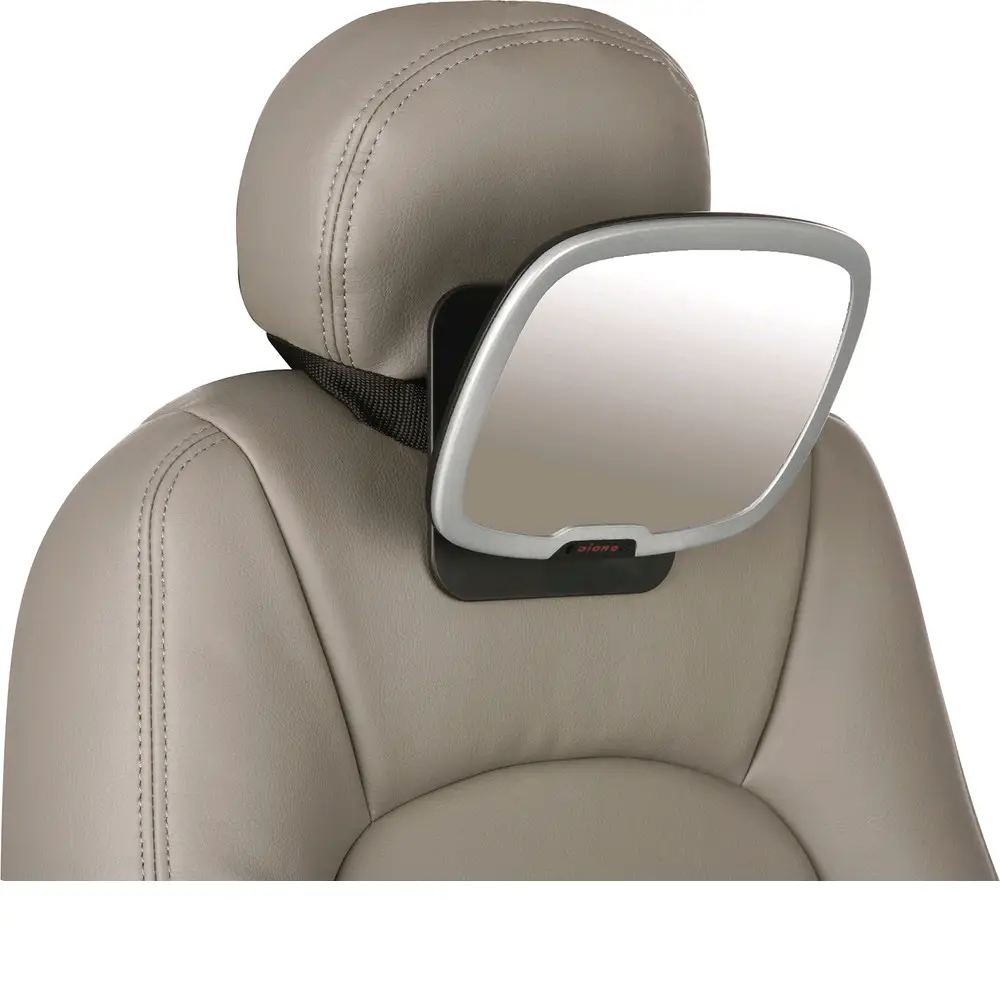 In auto con lo specchio ausiliario Facile ViewPlus di Diono vedete il vostro bambino, in modo sicuro, in qualsiasi momento della giornata . Lo specchio ha una lampada integrata. Quando si guida di notte, si può facilmente accendere la luce con il telecomando. Grazie alla luminosità graduale il bambino non si spaventa.