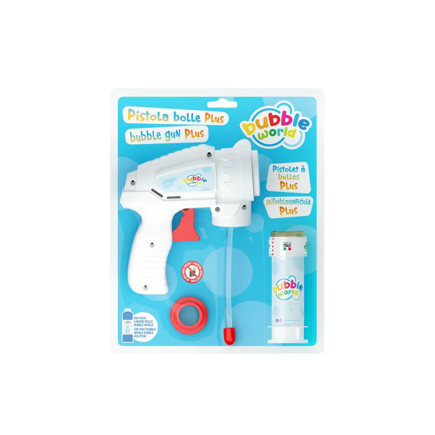 La Pistola Classic Plus è il giocattolo ideale per divertirsi all’aperto, creando magiche atmosfere piene di bolle di sapone. Questo set comprende una pistola meccanica e una bolla di sapone da 60ml, appartenente alla famosa linea Bubble World Classic. Il suo design innovativo elimina la necessità di batterie e utilizza un connettore universale, rendendo il riempimento veloce e senza sprechi, compatibile con tutti i formati di bolle Bubble World.