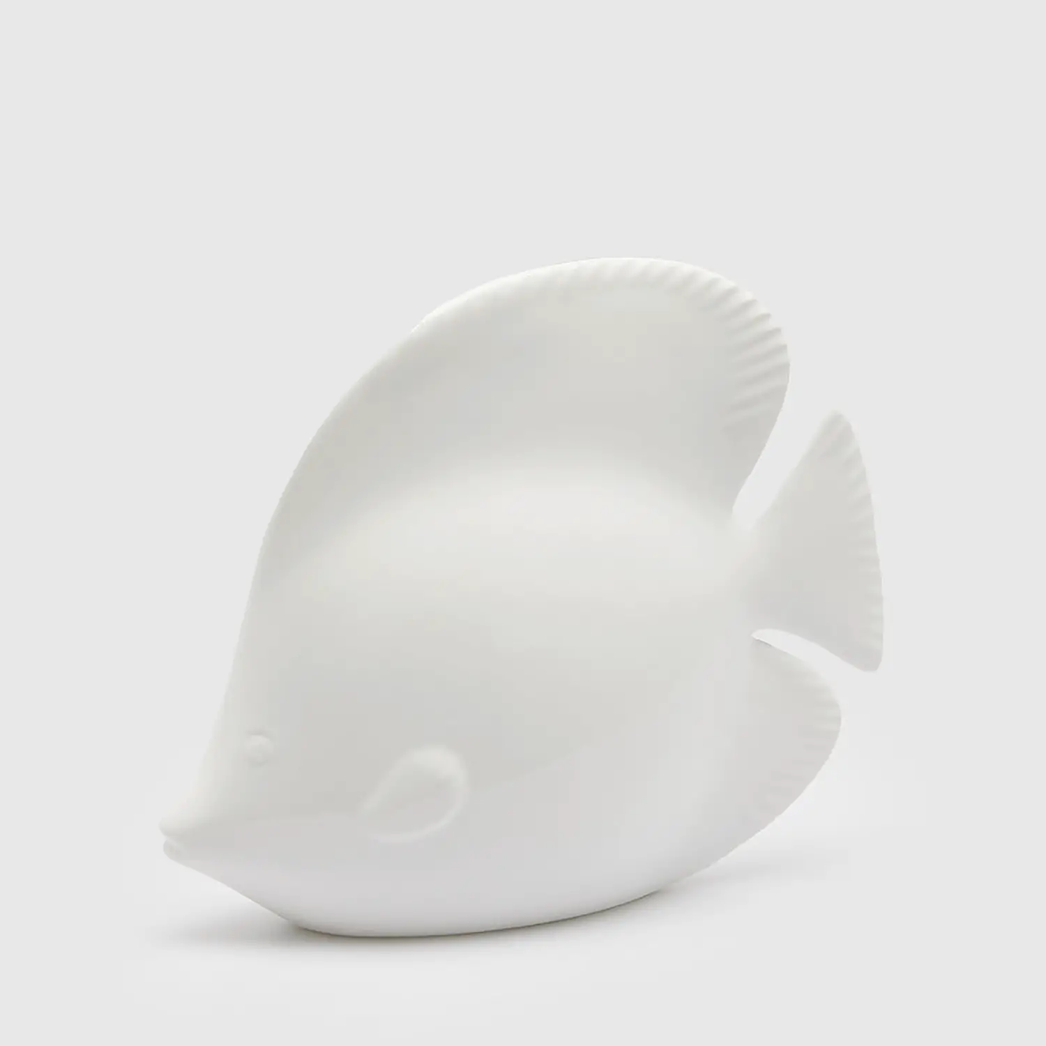 Decorazione Pesce Angelo Bianco Elegante decorazione a forma di pesce angelo con pancia tonda, dal design minimal e raffinato. Il colore bianco puro la rende perfetta per ambienti moderni, marini o shabby chic, aggiungendo un tocco luminoso e delicato.