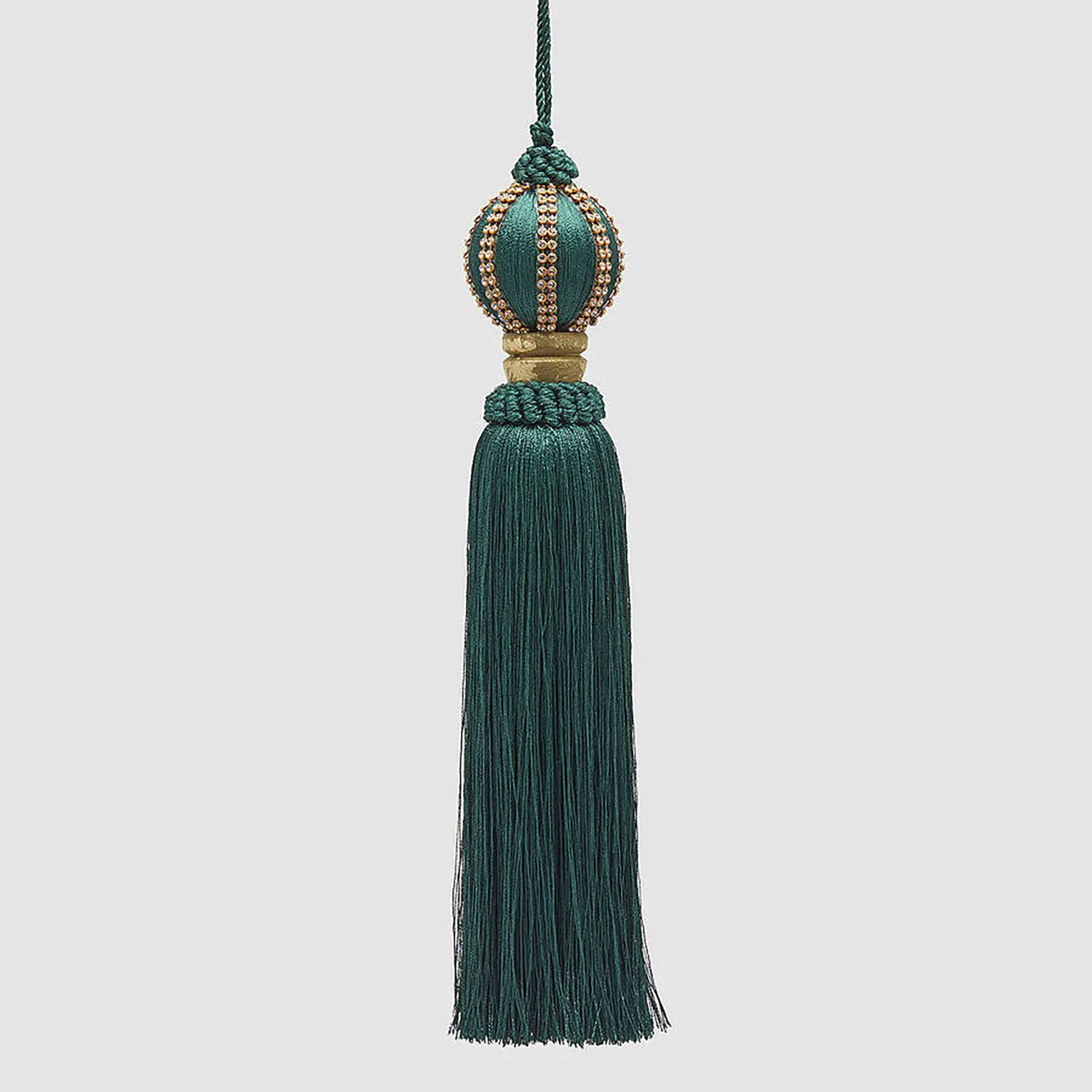 Decorazione natalizia elegante la nappa Gem Meridian verde e oro è un complemento raffinato che arricchisce alberi, ghirlande e ambienti con un tocco di classe.