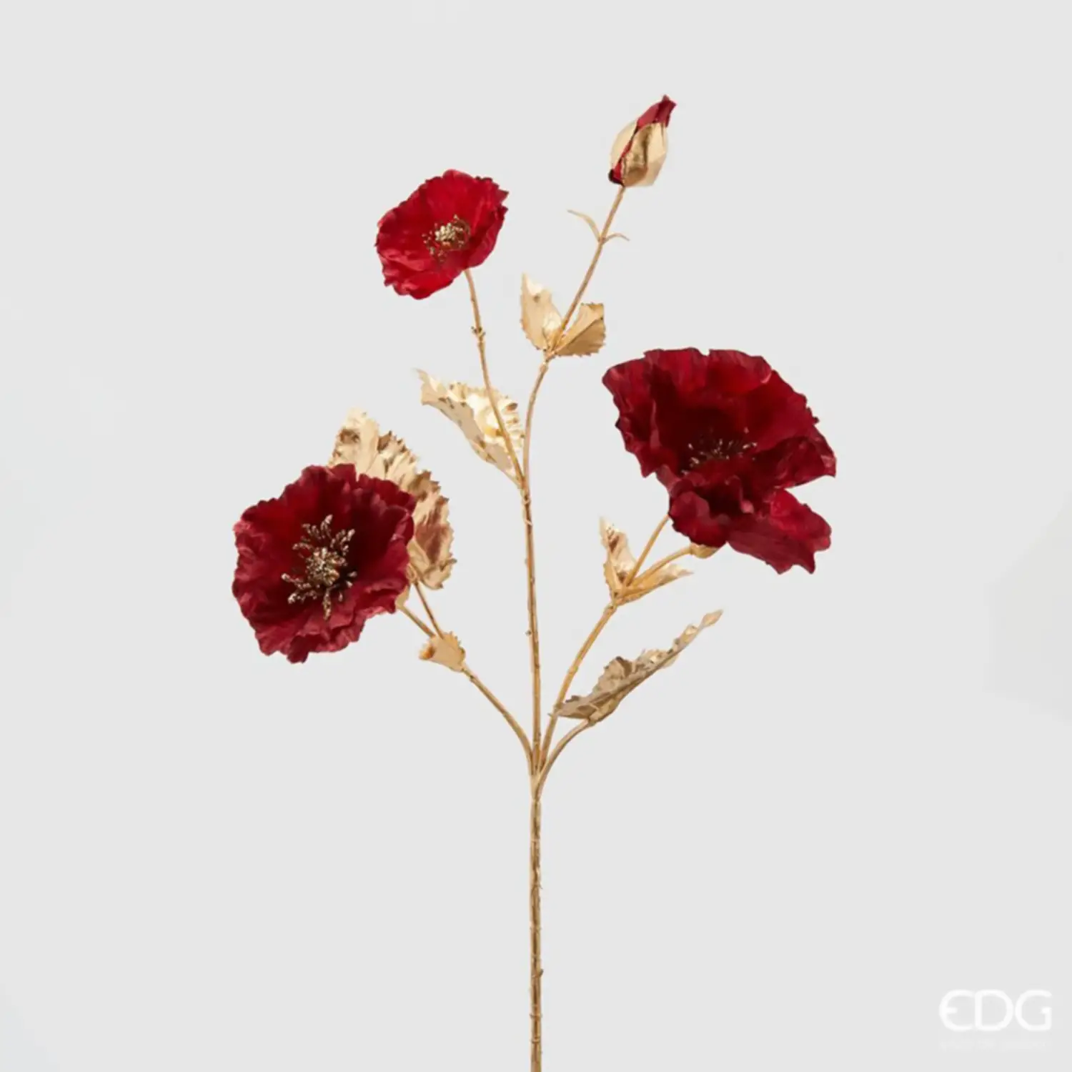 Papavero Natalizio: Stelo Oro, Altezza 64 cm, 3 Ramificazioni, Rosso