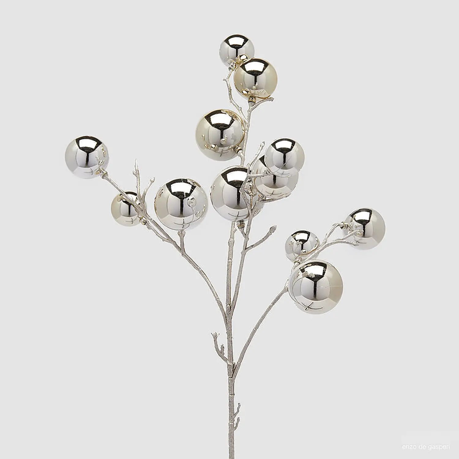 Design elegante e luminoso il Ramo PalleMix EDG con 12 sfere in finitura Light Gold porta un tocco raffinato e scintillante alle tue decorazioni natalizie, perfetto per ogni ambiente festivo.