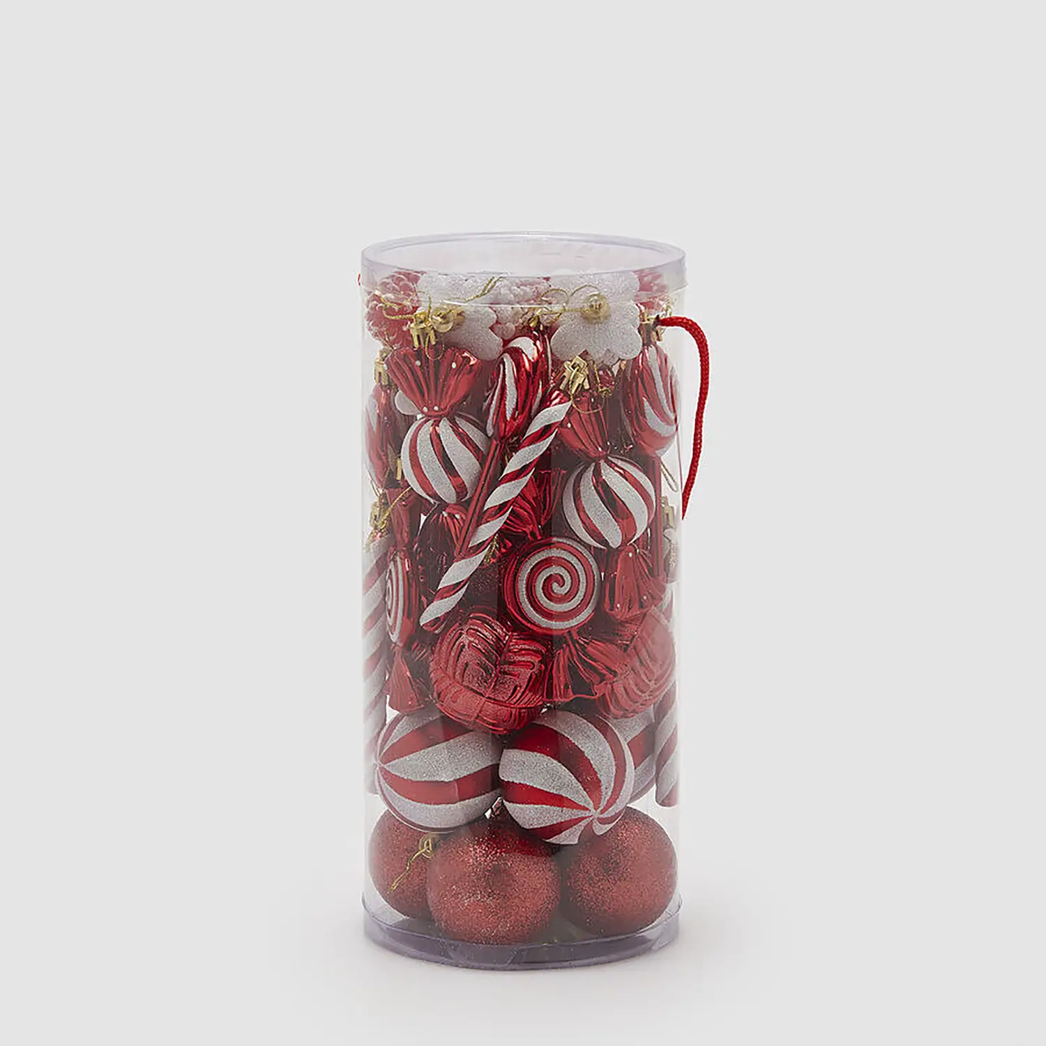 Design assortito e brillante il set include palline, candy cane, dolcetti e lecca-lecca decorativi, caratterizzati da glitter e finiture lucide che donano luminosità.