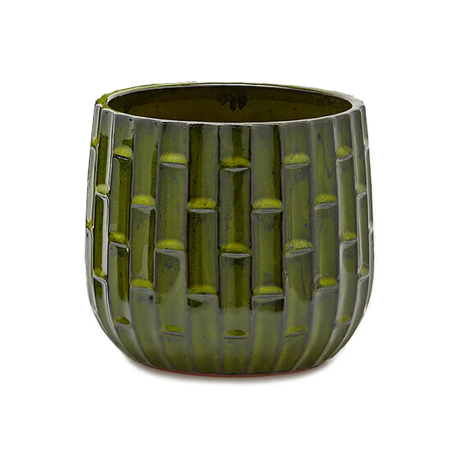 Design Decorativo Effetto Bamboo Il vaso decorativo cachepot Simil Bamboo presenta una lavorazione tridimensionale che richiama la forma naturale delle canne di bambù. Un design elegante e originale che dona carattere a qualsiasi ambiente.