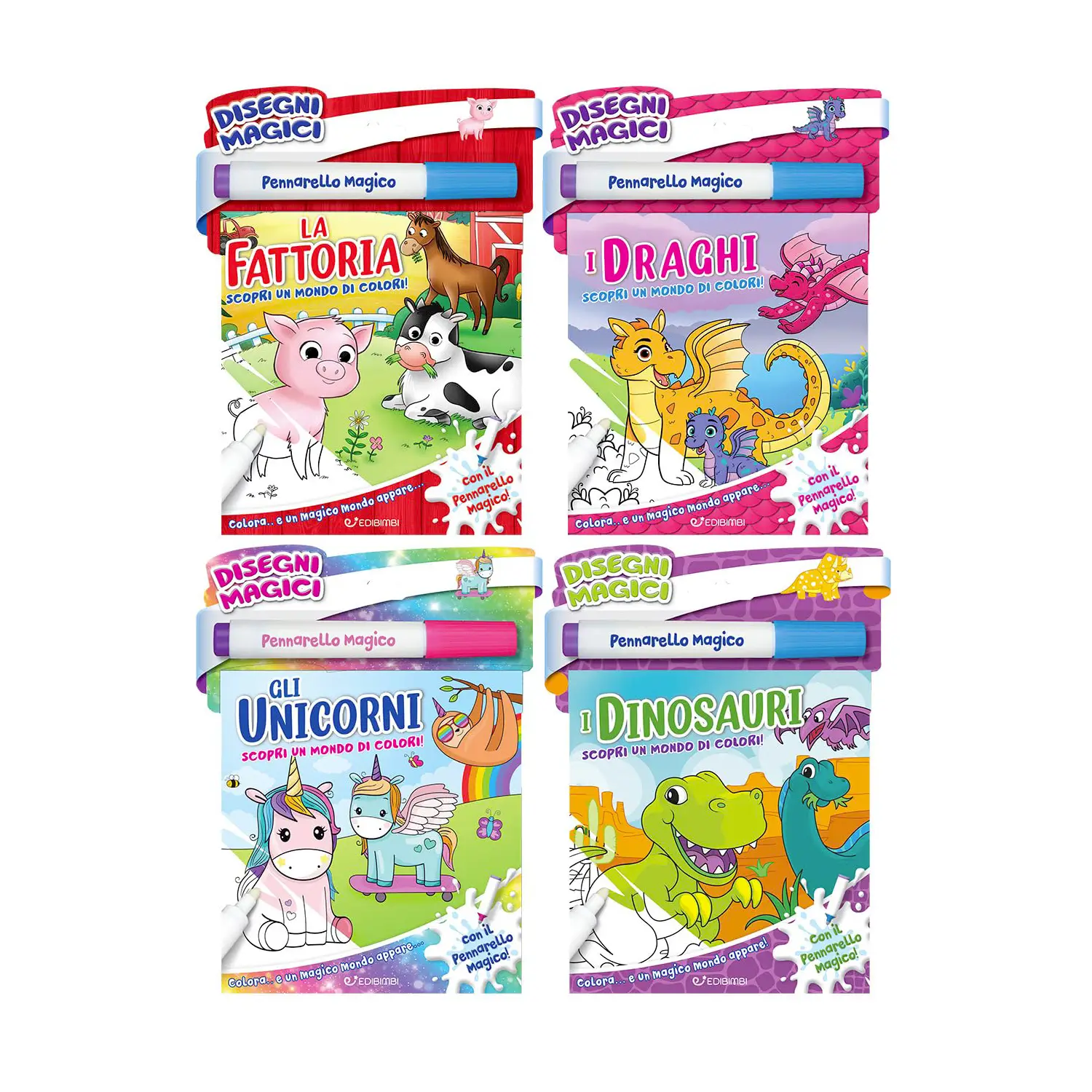 Libri Magici da Colorare con Pennarello Scopri collezioni incantevoli con Draghi, Unicorni, Fattoria e Dinosauri: ogni libro magico prende vita grazie al pennarello incluso.