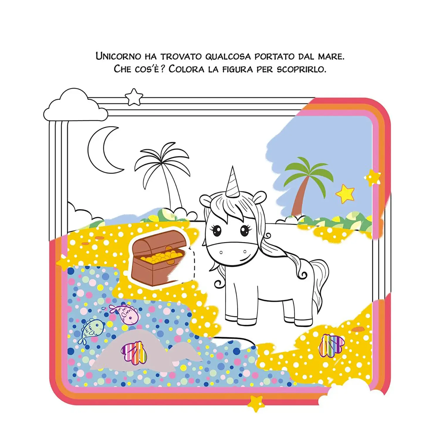 Colori che appaiono per magia Passando il pennarello magico sulle pagine, le illustrazioni si riempiono di colori vivaci e sorprendenti, regalando stupore e divertimento ai piccoli artisti.