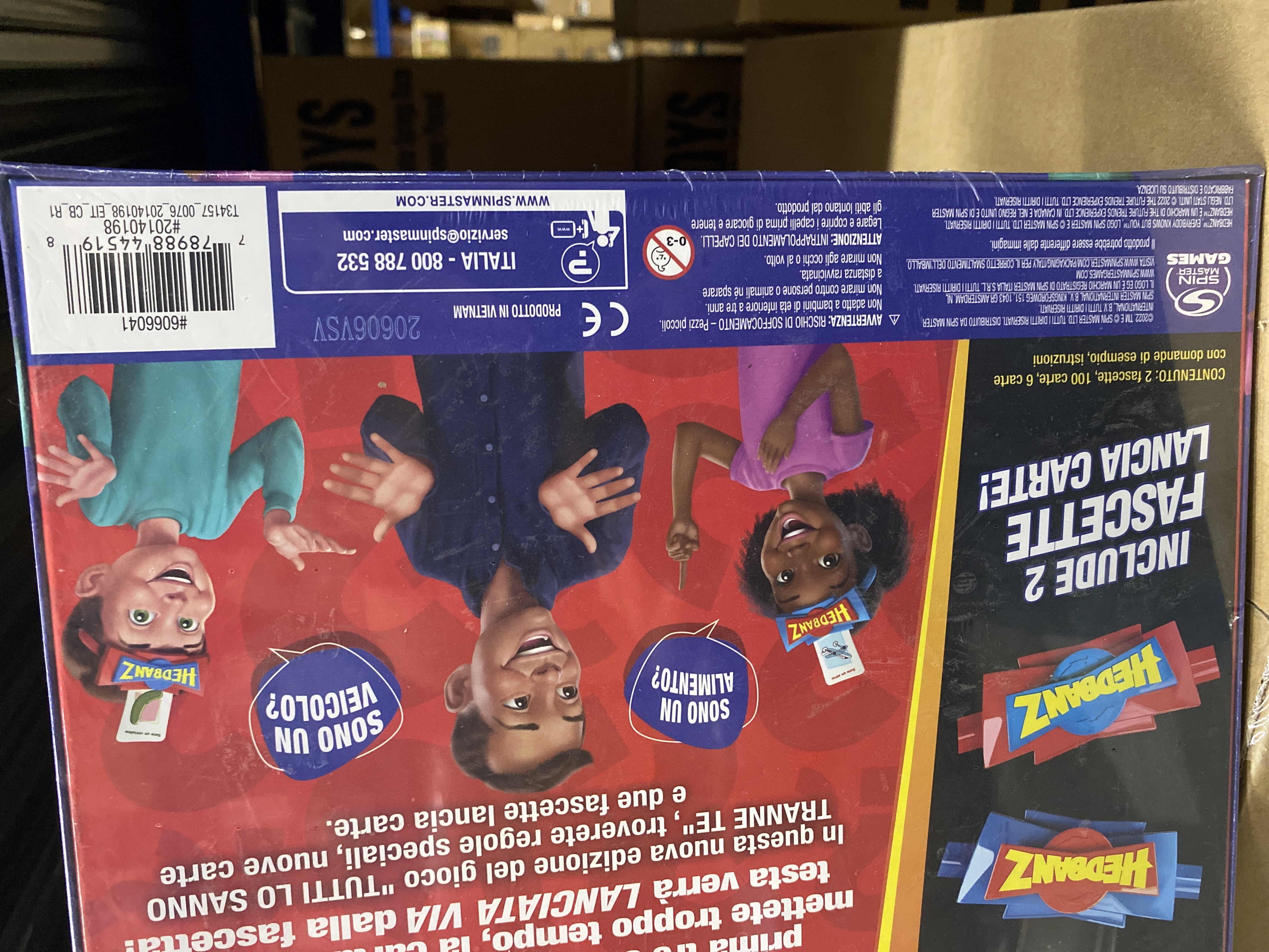 Contenuto del gioco in scatola: essere o non essre ti blasto, include 2 fascette con timer e un dispositivo lanciacarte, 100 nuove carte illustrate, 6 schede di domande di esempio e istruzioni