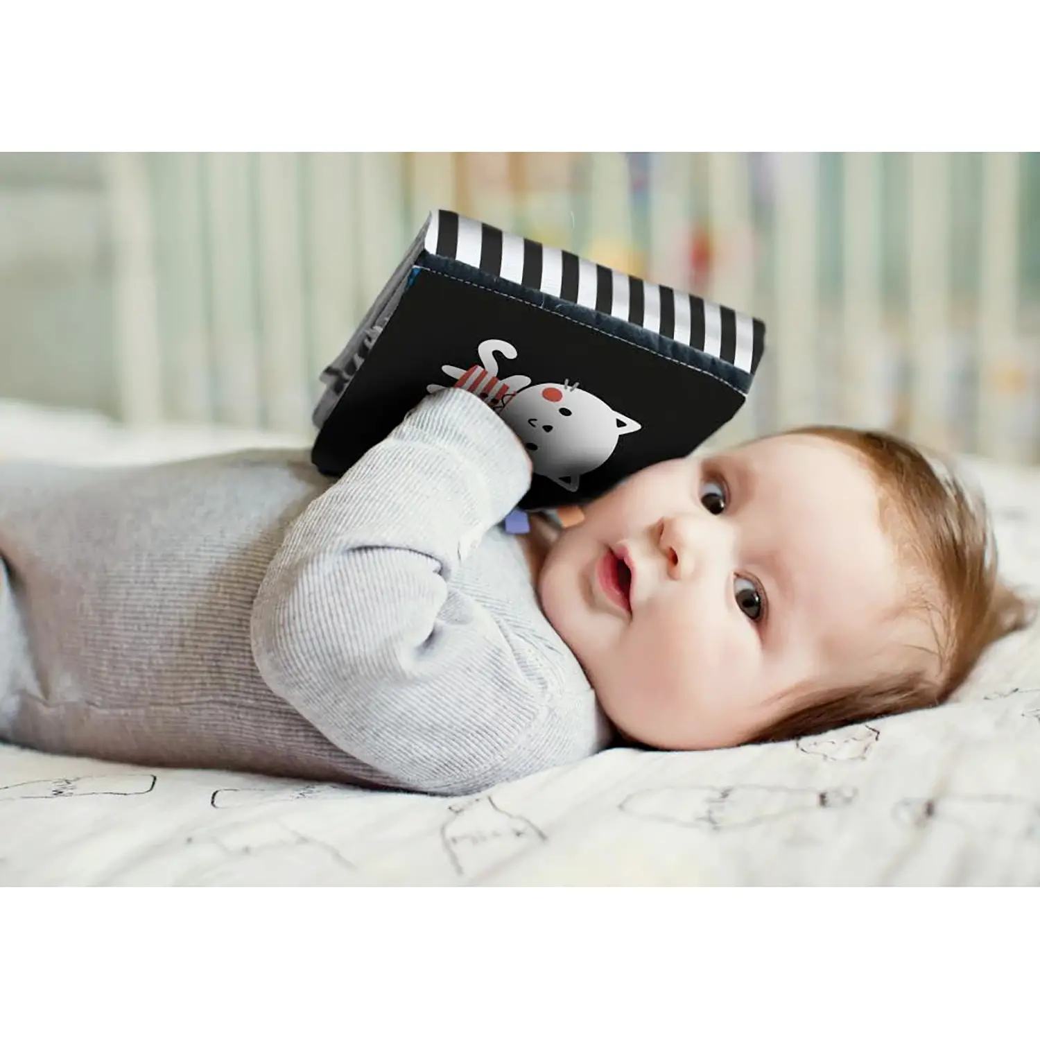Materiali sicuri e di alta qualità – Realizzato in stoffa morbida, resistente e lavabile, il libro è perfetto per essere manipolato in totale sicurezza dalle manine dei bebè.