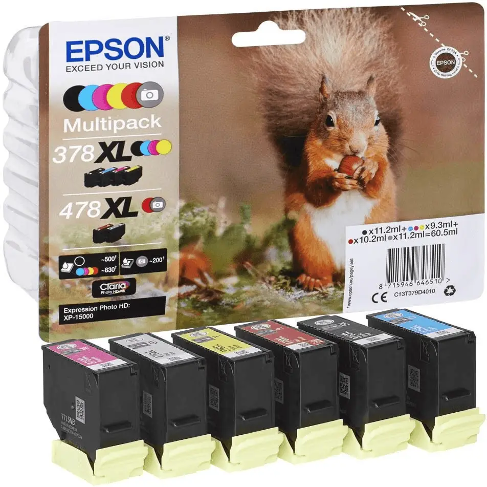 EPSON CONFEZIONE 6 CARTUCCE INK MULTIPACK 1 PER COLORE 378XL + 478XL SCOIATTOLO
