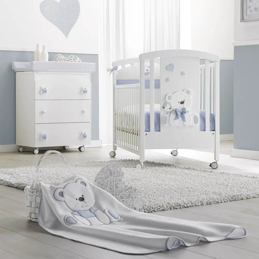 - Cassettiera a 3 cassetti: Ampi cassetti con pomelli a forma di palina e orsetto, arricchiti da fiocchi morbidi color grigio, per un design elegante e delicato.