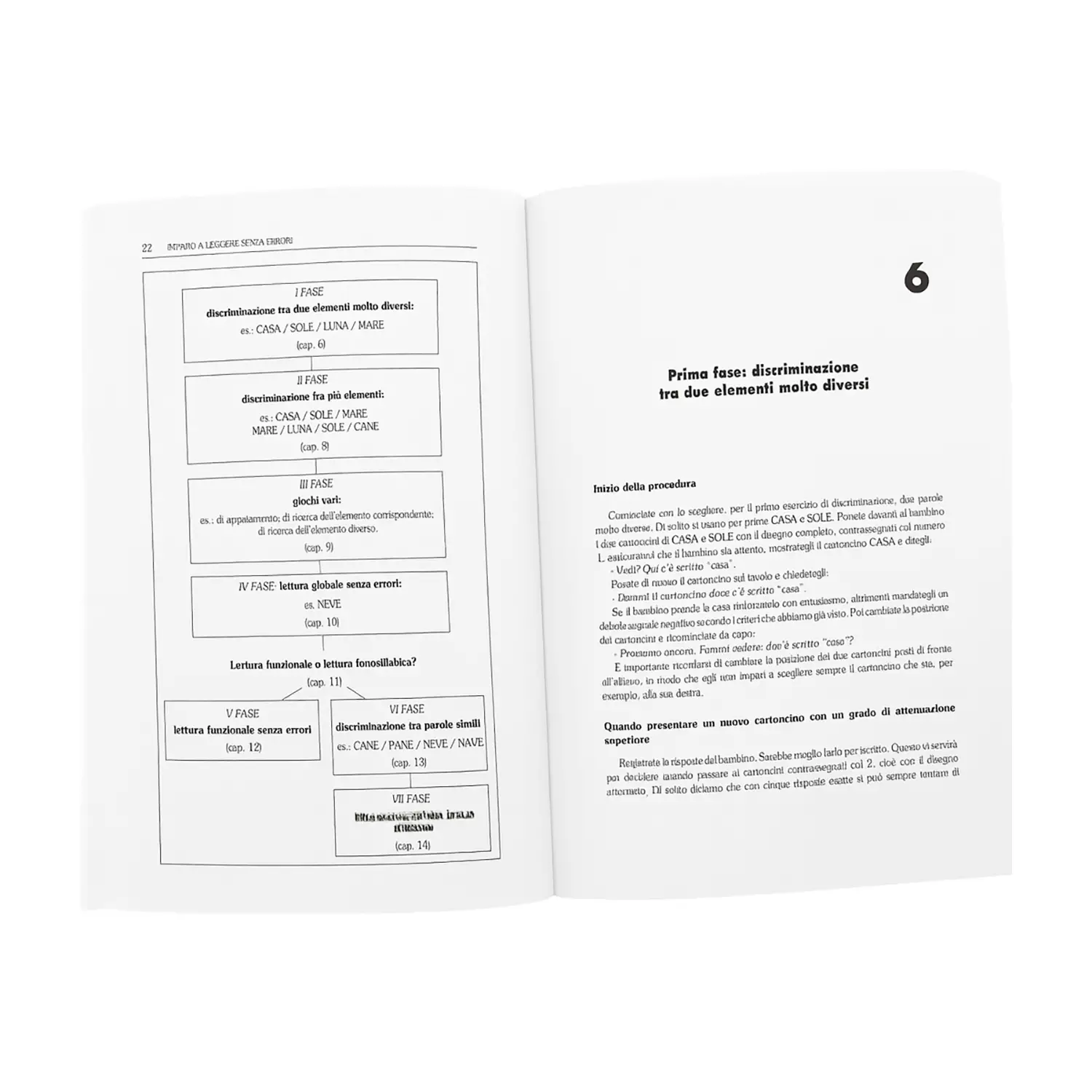 Metodo di lettura senza errori – Questo programma didattico utilizza la tecnica del learning without errors, che facilita l’apprendimento della lettura riducendo al minimo la frustrazione, ideale per studenti con ritardo mentale o difficoltà specifiche.