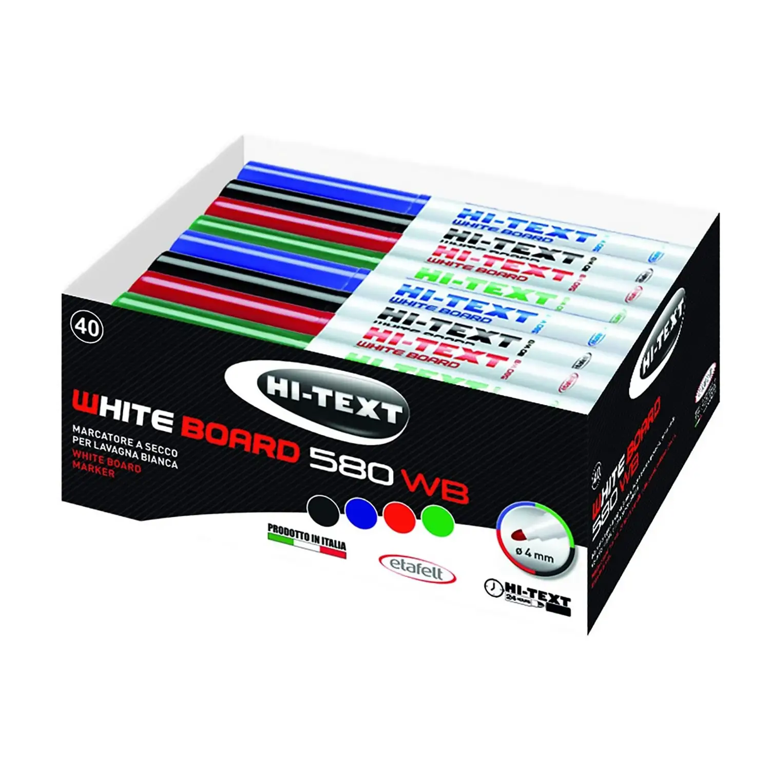 Marcatore a Secco Hi-Text – Set 40 Pezzi 4 Colori per Lavagne Cancellabili