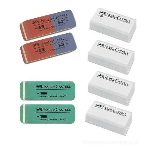 - ✅ Set di 8 gomme assortite Faber-Castell per cancellazioni precise su matita e inchiostro senza residui.