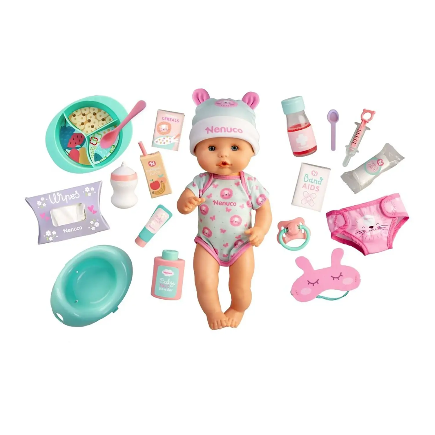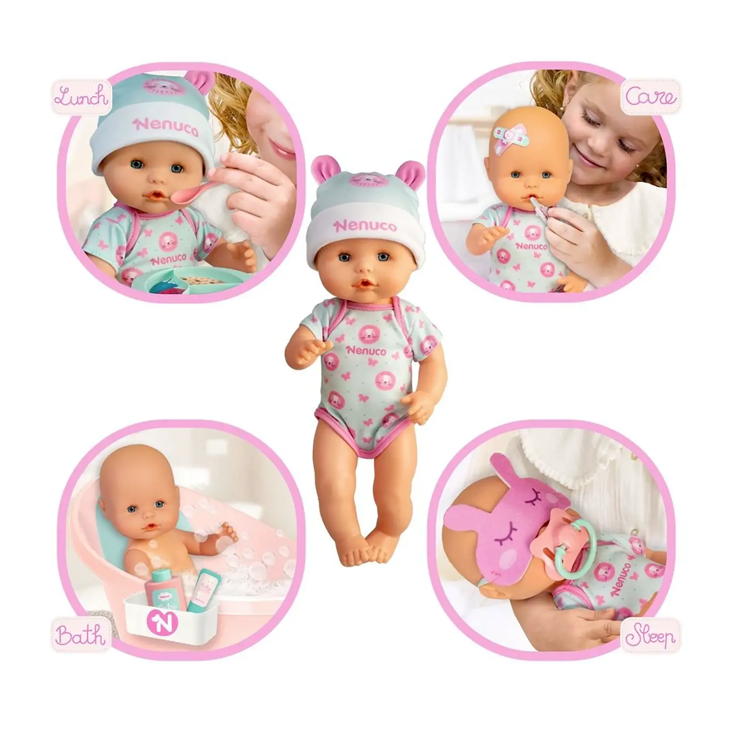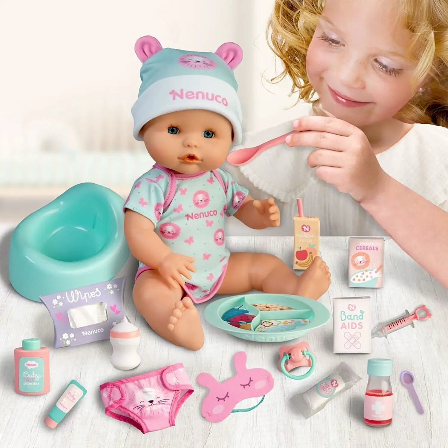Bambola Nenuco 35 cm con 8 Funzioni La bambola Nenuco offre un’esperienza di gioco realistica grazie alle sue 8 funzioni interattive: piange, beve dal biberon, fa pipì, gli cola il nasino, si arrossa, si può fare il bagno, profuma di neonato ed è articolata.