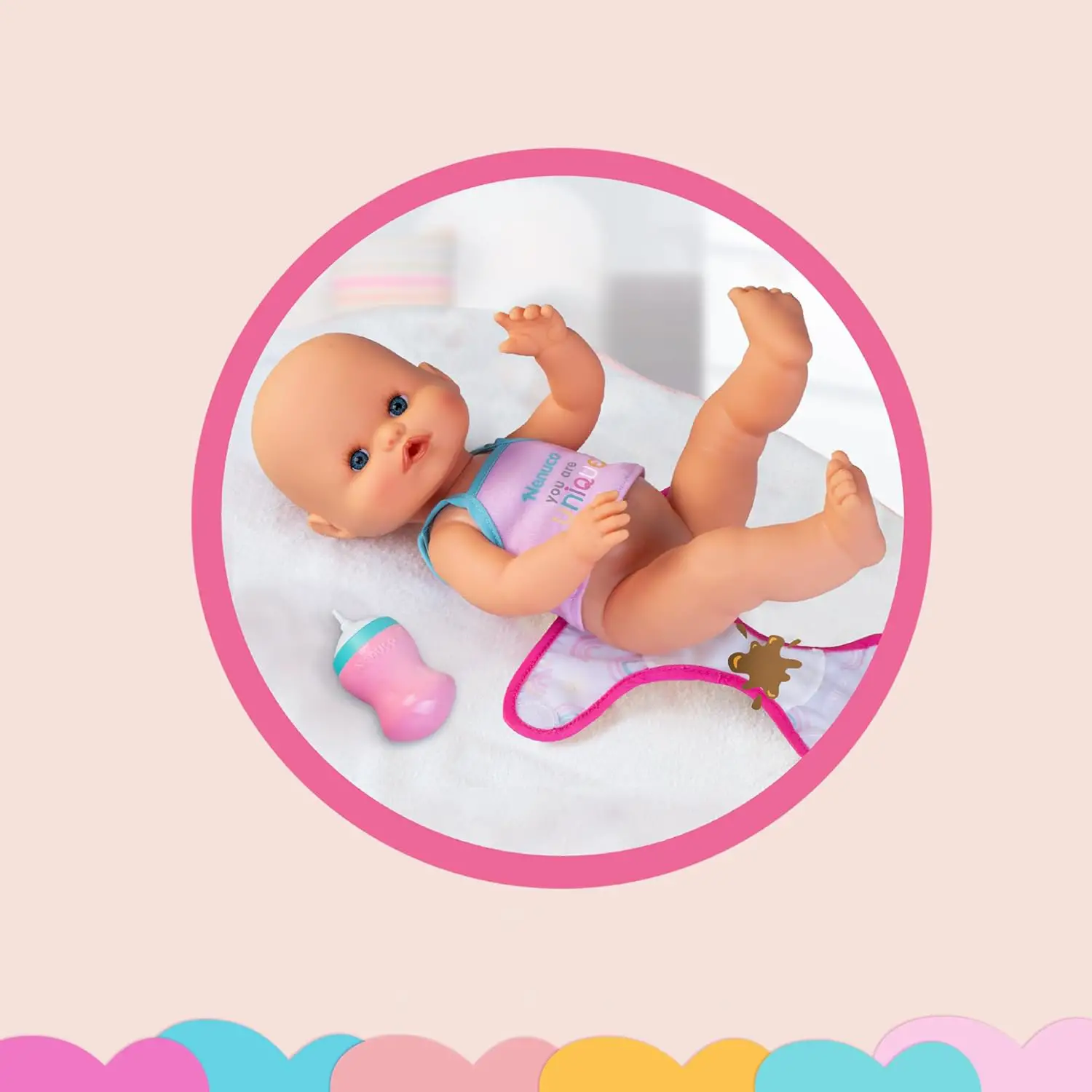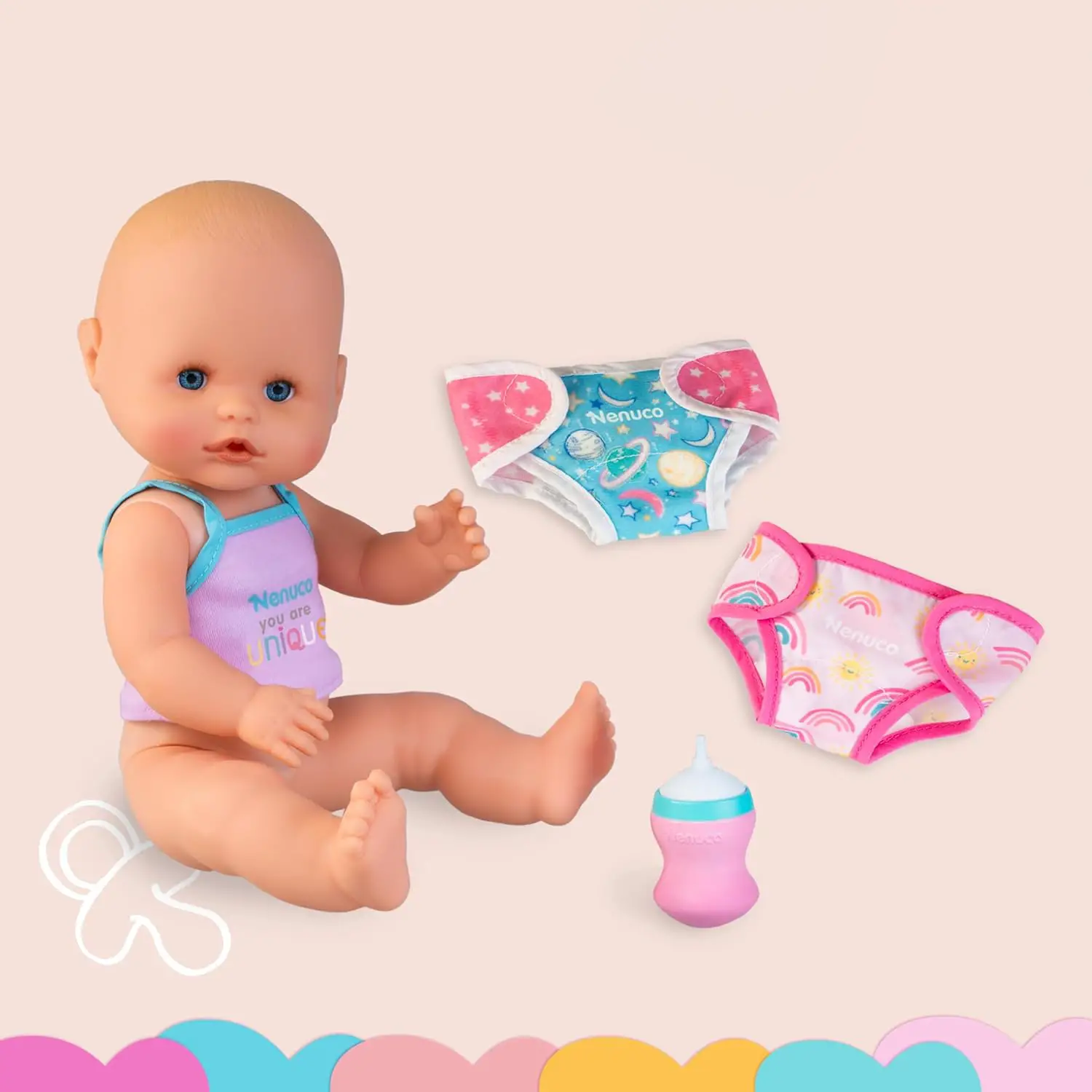 - ✅ Accessori inclusi: biberon, 2 pannolini lavabili, pannolino giorno e pannolino notte che brilla al buio.