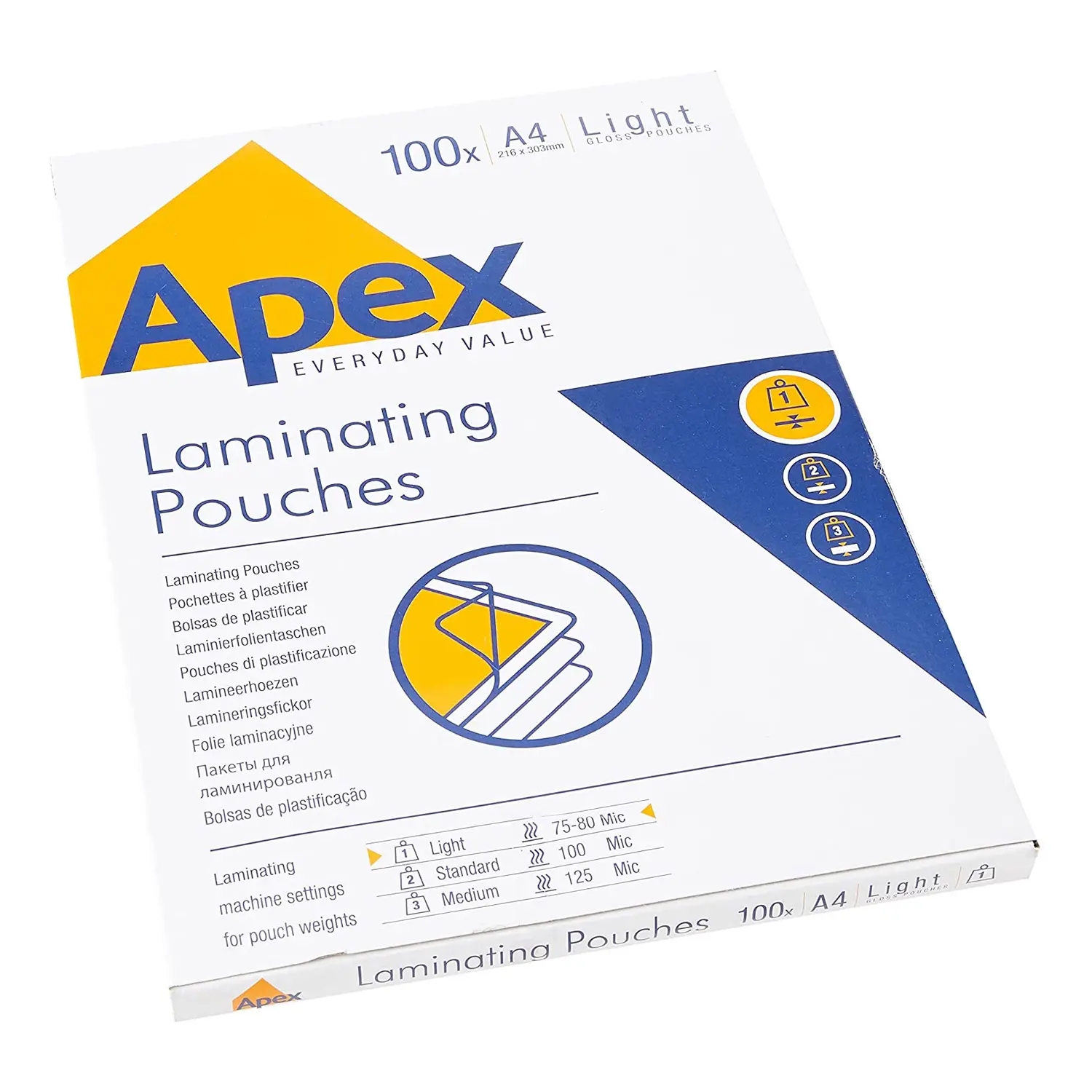 Pouches Plastificazione Apex A4 Spessore 75-80 Micron 100 Pezzi