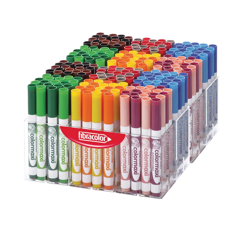 I Pennarelli Fibracolor Colormaxi 240 pezzi sono la scelta perfetta per scuola dell’infanzia, asili, laboratori creativi e forniture scolastiche professionali. Grazie alla punta doppio tratto 3-6 mm, consentono di ottenere linee sottili in verticale e tratti spessi in inclinazione, offrendo versatilità in un solo pennarello.