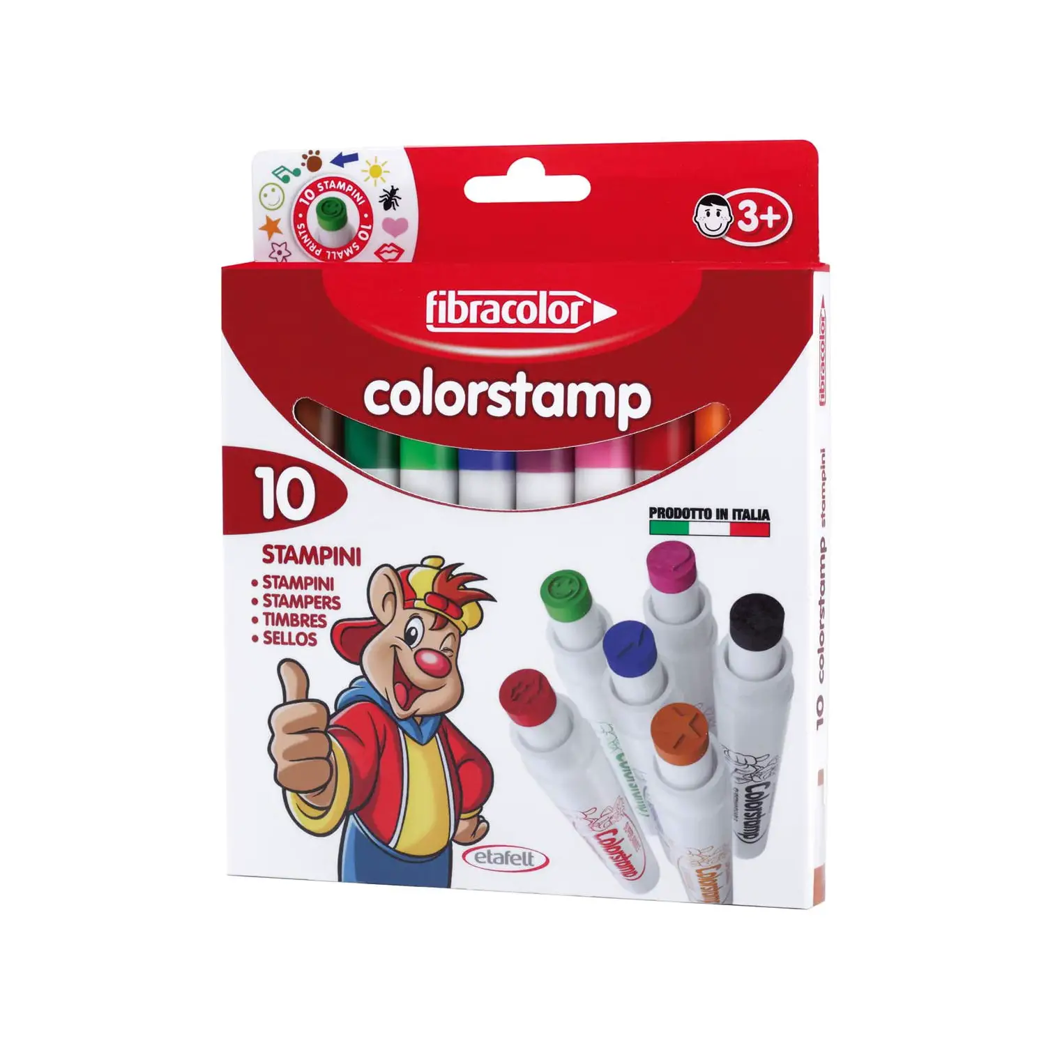 I Pennarelli Punta Stampino Fibracolor Colorstamp sono perfetti per stimolare la creatività dei bambini grazie alla speciale punta stampino con 10 soggetti diversi. Ideali per scuola materna, asilo e attività creative, permettono di realizzare disegni originali con forme divertenti e colori brillanti.