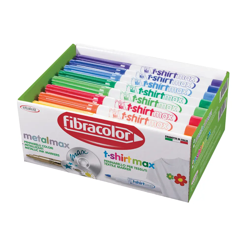Dai vita alla creatività sui tessuti con i Pennarelli per Tessuto T-Shirt Max, perfetti per personalizzare magliette, grembiuli e altri capi. Ideali per bambini, scuola e attività artistiche.