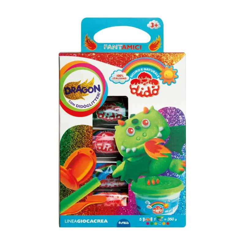 - ✅ Set creativo con 350g di pasta da modellare Didò glitter e formina drago inclusa.