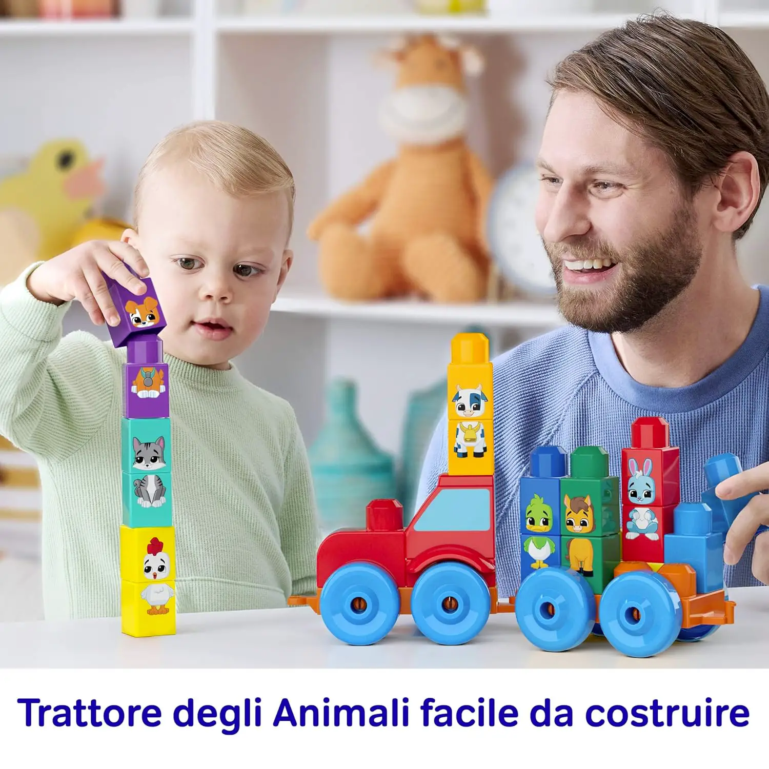 MEGA Bloks Trattore degli Animali Costruisci e Impara Il set MEGA Bloks Trattore degli Animali Costruisci e Impara è un divertente gioco educativo che aiuta i bambini a scoprire colori, animali e costruzioni. Grazie ai grandi blocchi facili da impugnare, i più piccoli possono costruire il trattore e inventare tante avventure nella fattoria.