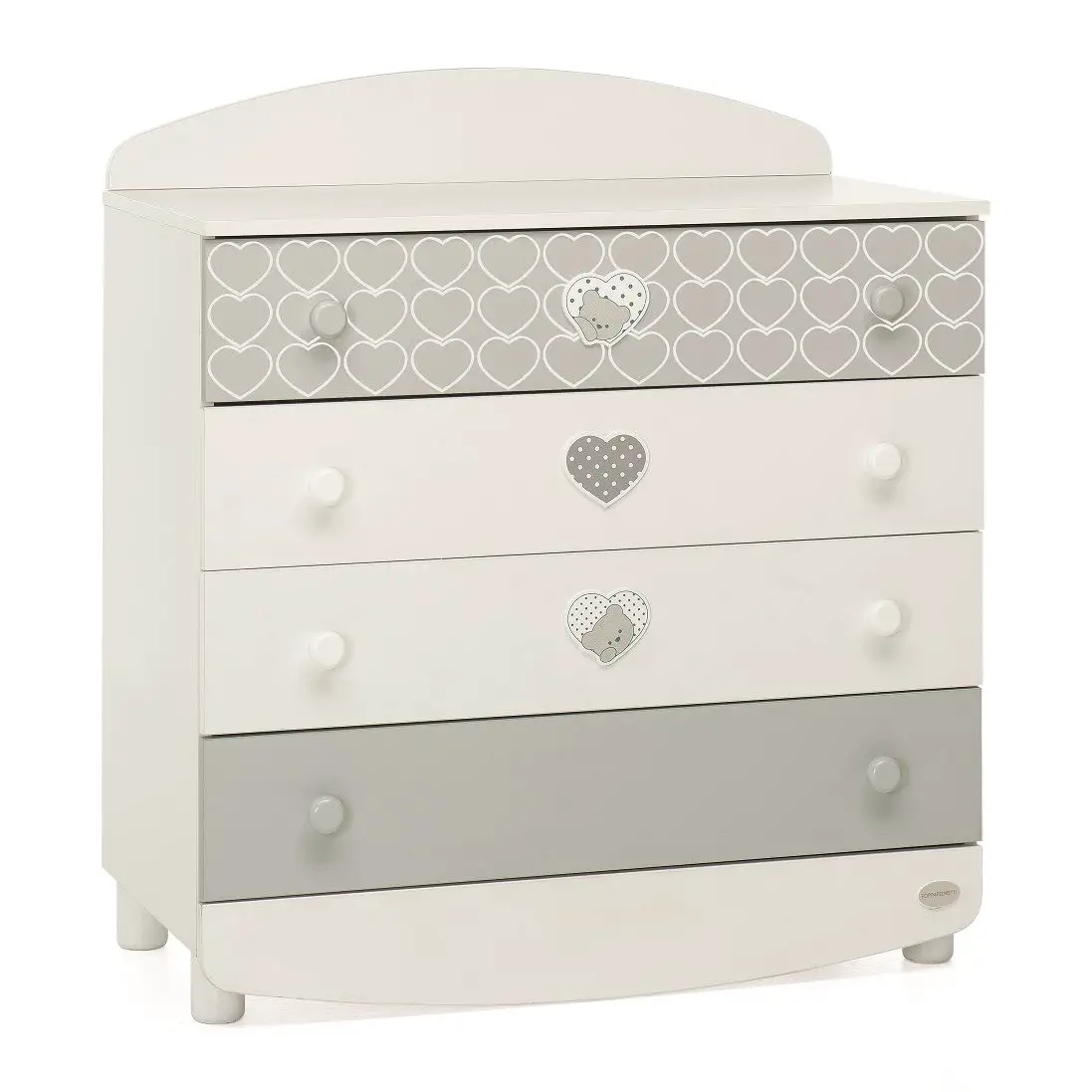 La Cassettiera Lovely è la soluzione ideale per arredare la cameretta con dolcezza e funzionalità. Perfetta per organizzare vestitini, body, tutine e accessori del neonato, unisce praticità e design delicato.