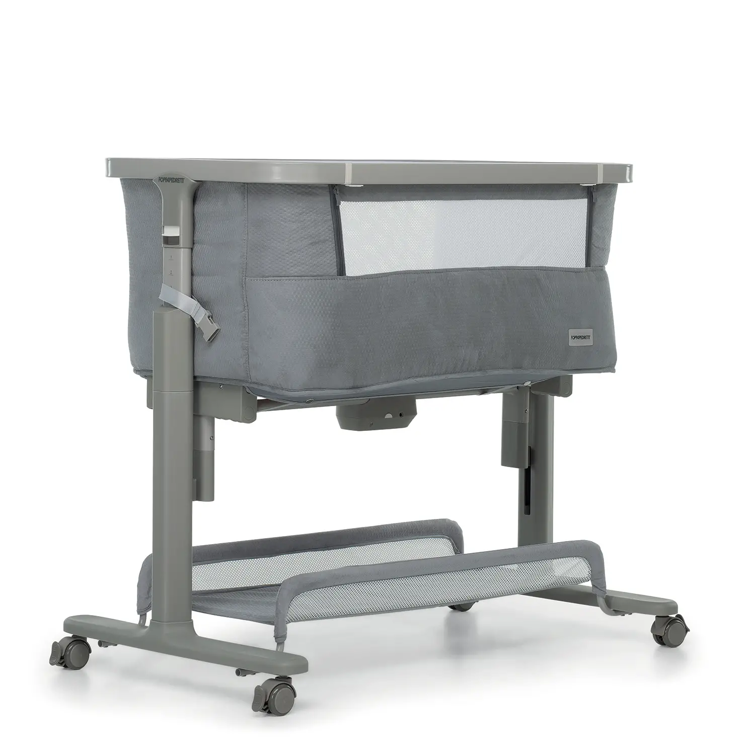 • Possibilità di aprire il fianco per consentire la modalità co-sleeping, con cinghie di fissaggio universali per una maggiore sicurezza.
