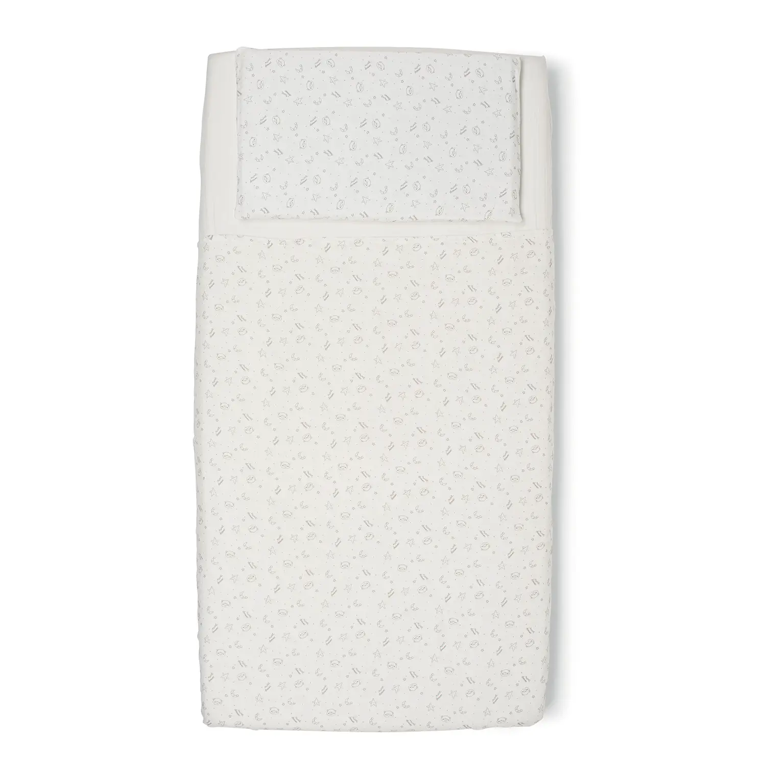 - ✅ Set composto da lenzuolo superiore e federa coordinata, specifico per culla Evo.