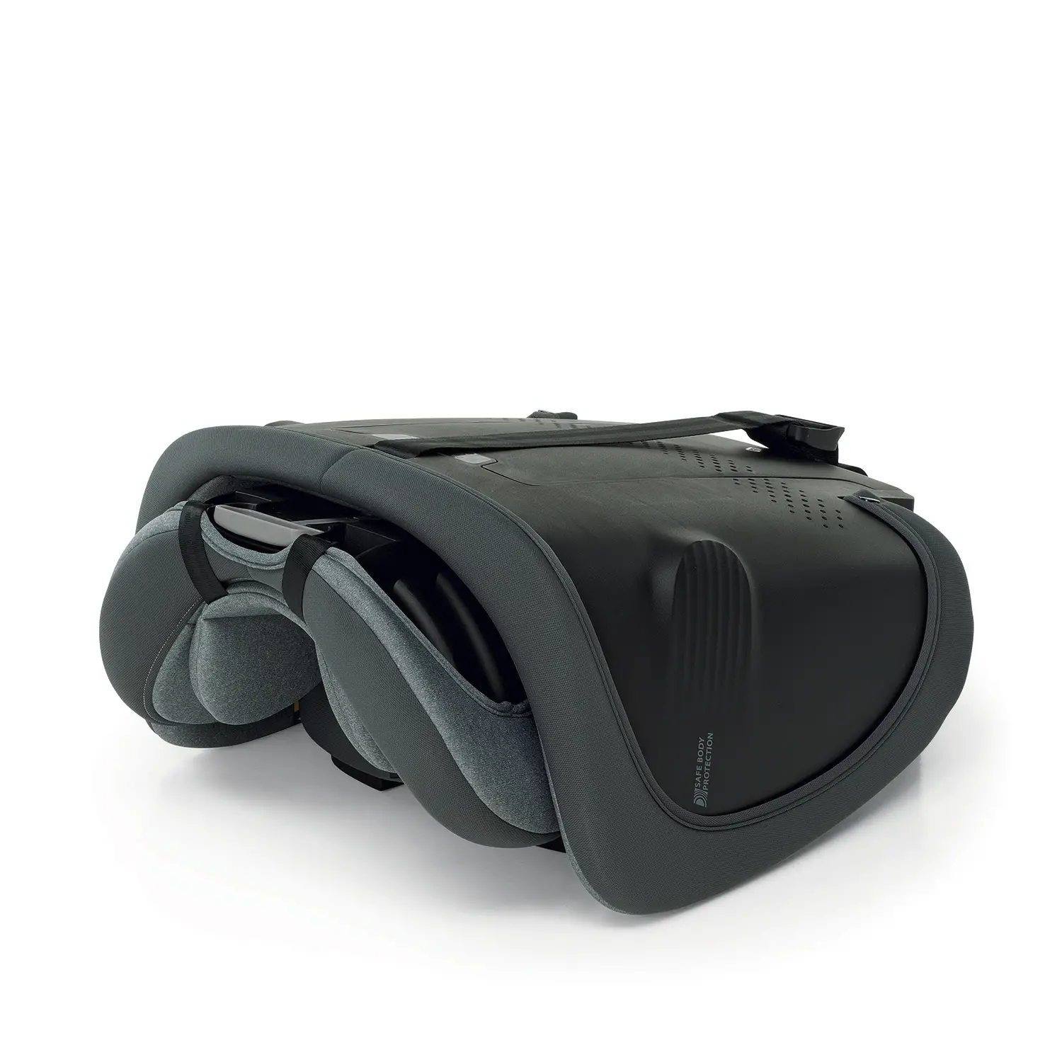 Comfort e ventilazione durante il viaggio Seduta e schienale reclinabili, schienale adattabile all’inclinazione del sedile dell’auto e sistema di ventilazione Air Flow sulla scocca assicurano comfort anche nei viaggi più lunghi. Il seggiolino è inoltre pieghevole per una chiusura compatta.